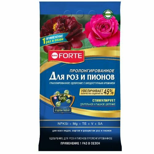 Удобрение минеральное для роз и пионов Премиум гранулированное пролонгированное от бренда Bona Forte с микроэлементами.