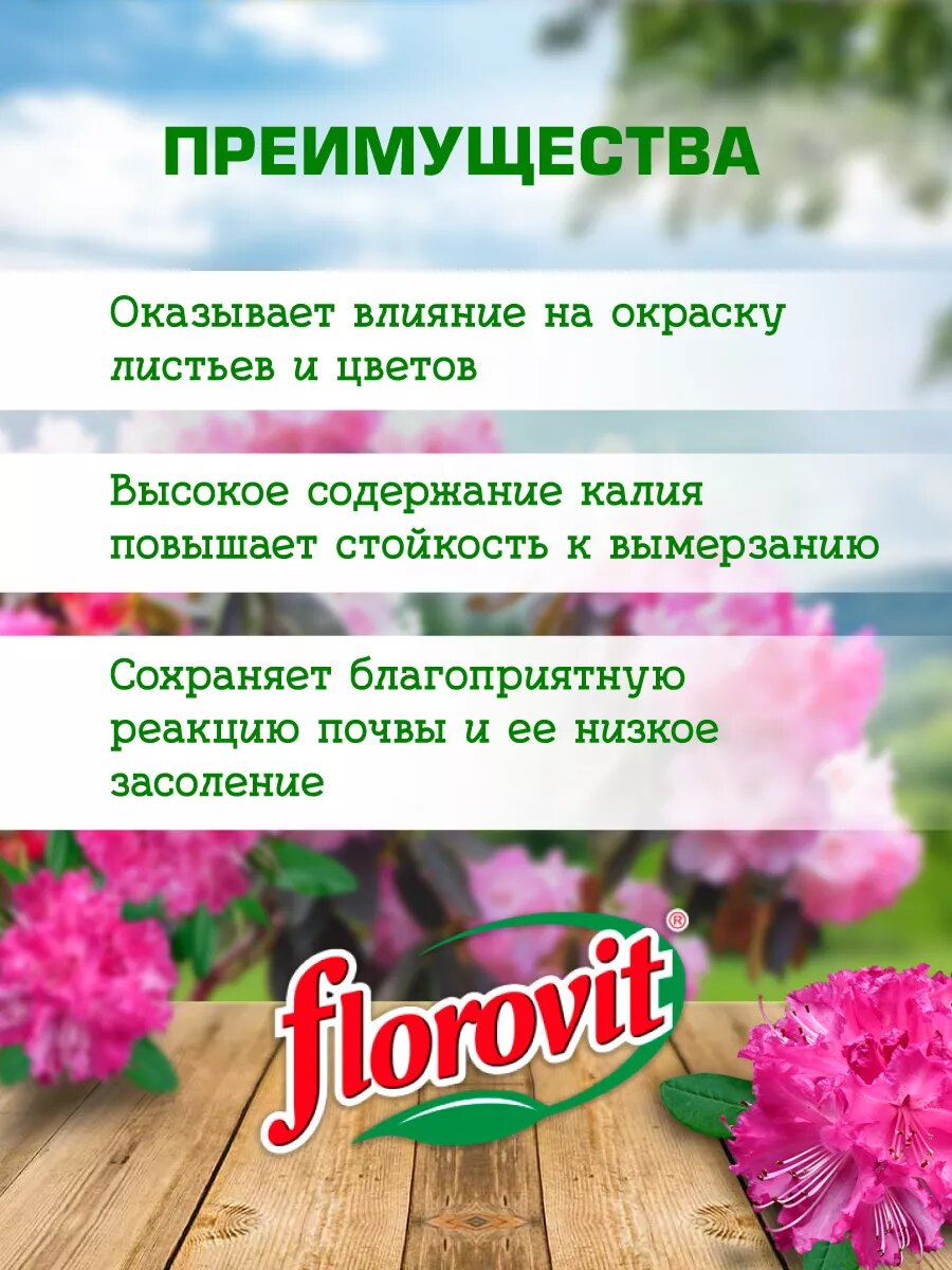 Преимущества использования удобрения Флоровит для рододендронов: