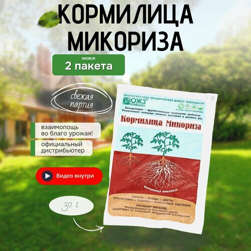 Удобрение для растений Кормилица Микориза в каждой упаковке по 30 грамм обеспечит ваши растения осенью весной летом (овощи, ягоды, цветы, деревья и комнатные растения) дома или в саду и огороде верными друзьями на всю жизнь. Всегда свежая партия. Он содержит дружественные растениям грибы, которые формируют с корнями взаимовыгодный симбиоз. Благодаря этому всасывающая способность корневой системы возрастает на порядок, и растения значительно легче получают воду и питательные вещества. Кроме того, полезные грибы своим присутствием не дают развиваться болезнетворным микробам – это настоящий щит от болезней и стрессов. В составе препарата имеются как элементы микоризного гриба, так и колонизированные им фрагменты корней, что в разы повышает его эффективность и стабильность. Микориза для огурцов кабачков арбузов дыни тыквы и других овощных плодовых культур, развивающаяся от живого мицелия, – самая эффективная, поскольку для роста ее достаточно слегка увлажнить. Подавляет развитие фитопатогенов и вредителей. Снижает потребность растений в регулярном поливе и удобрении почвы минеральными веществами, особенно фосфатами. Повышает выживаемость саженцев при пересадке, в условиях засухи и низких температур. Заменяет удобрения при выращивании всех видов растений (универсальный): овощи зелень кустарник дерево газон цветы. Сезонность применения: всесезонное удобрение осеннее весеннее для дома подкормка для открытого грунта для теплицы для рассады удобритель для огорода и сада