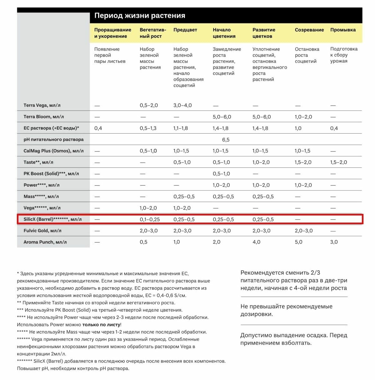 Важно: SilicX может вноситься в грунт с другими удобрениями и стимулирующими добавками.
