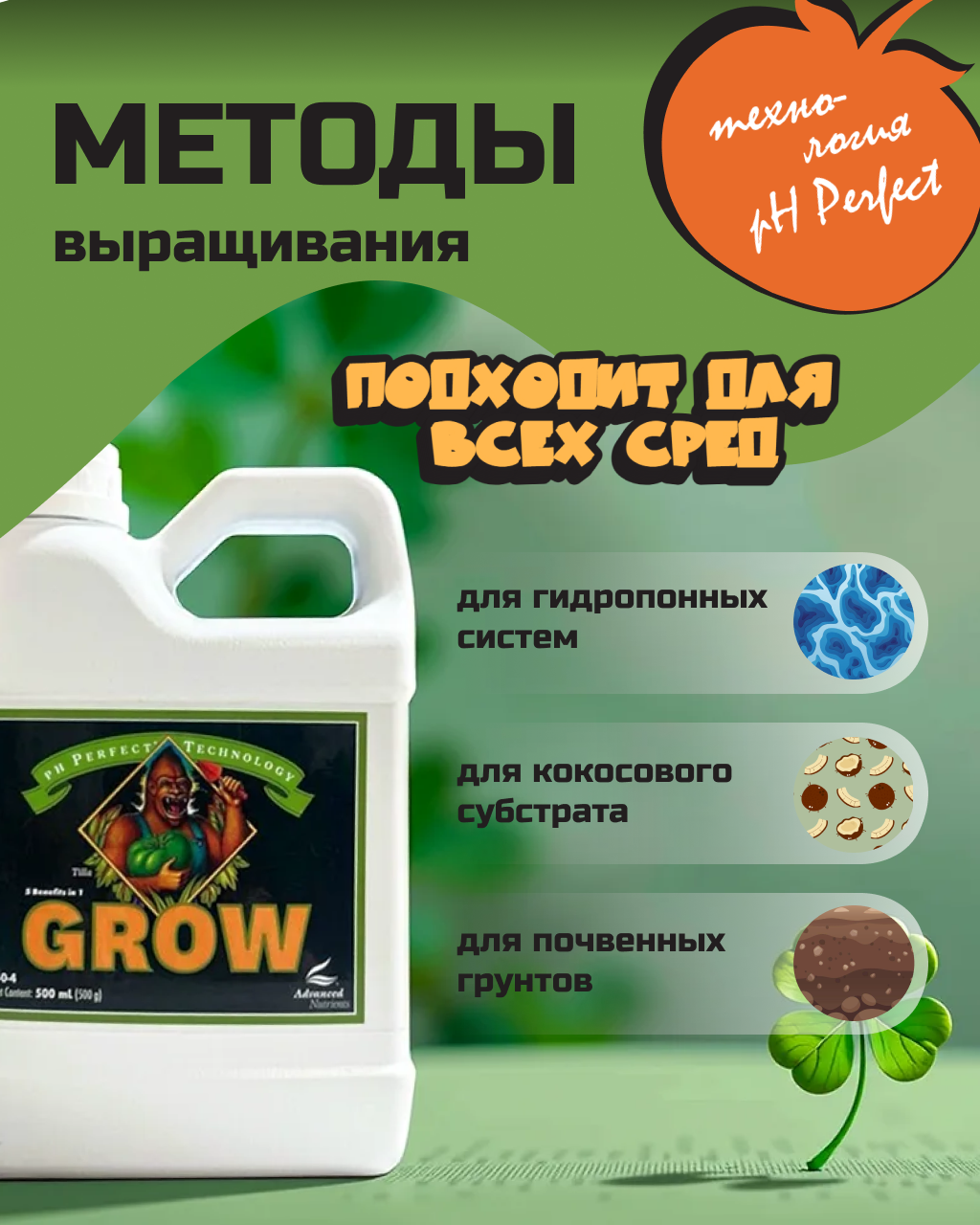 Это трехчастное удобрение можно использовать как при выращивании в почве или торфе, так и при выращивании методом капельного орошения или периодического затопления, а также в гидропонических системах.