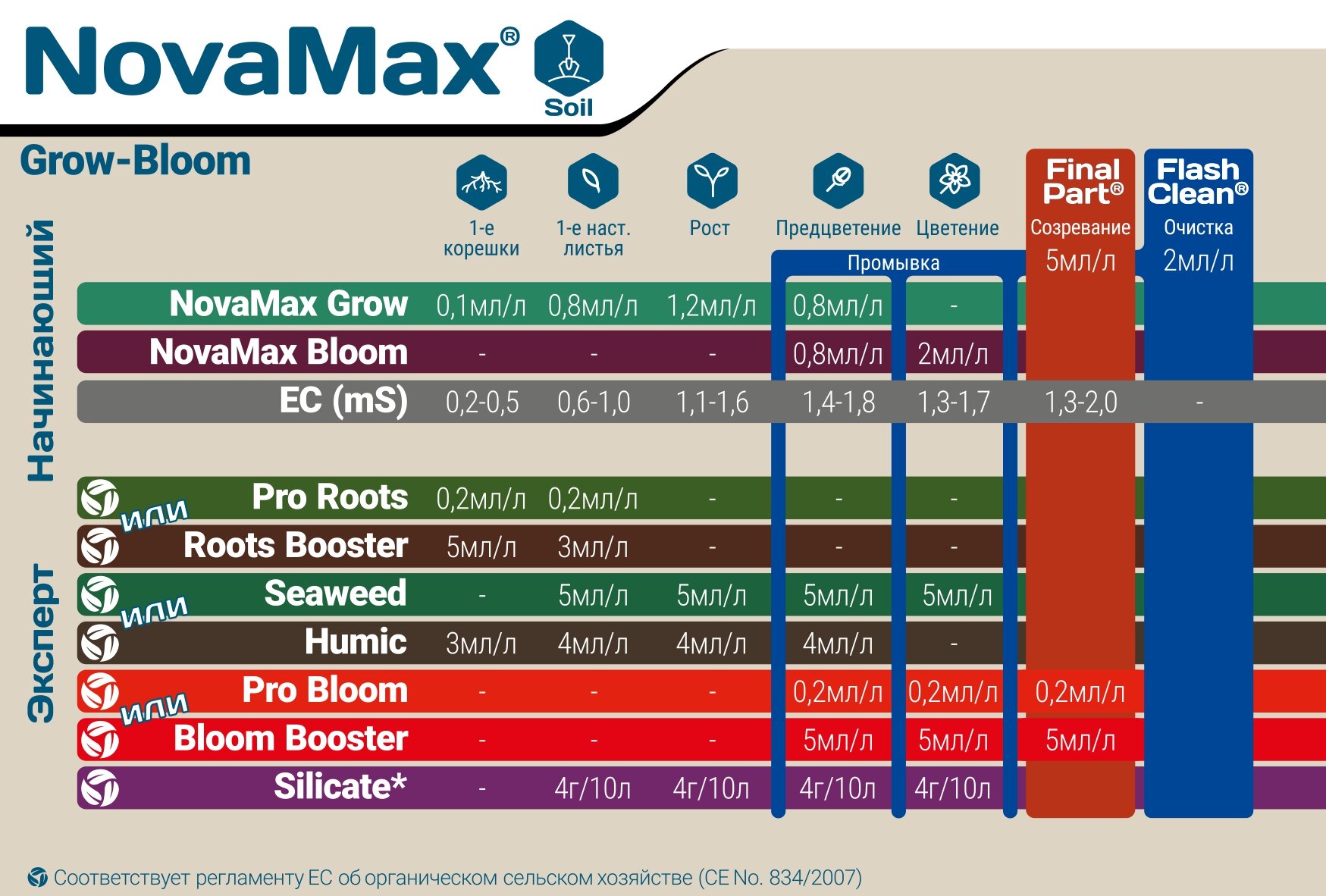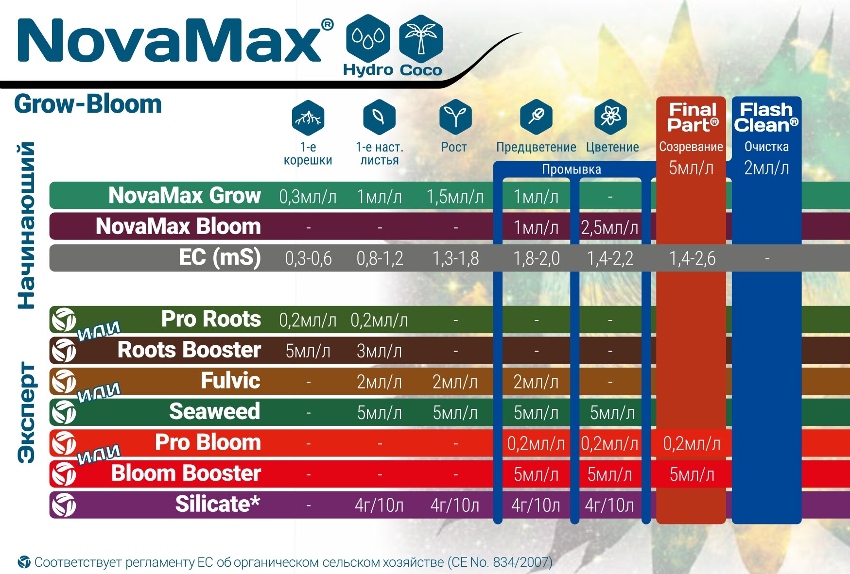 Смотрите таблицу применения GHE FloraNova.
