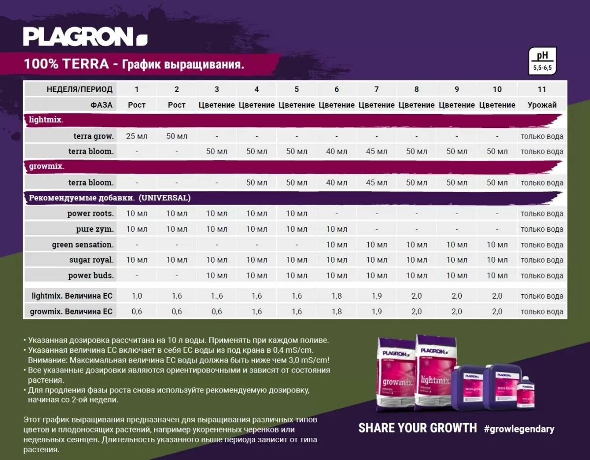 В системах с использованием искусственного света данная питательная смесь применяется в цикле освещения 12/12, при котором растение переходит от вегетации к цветению.