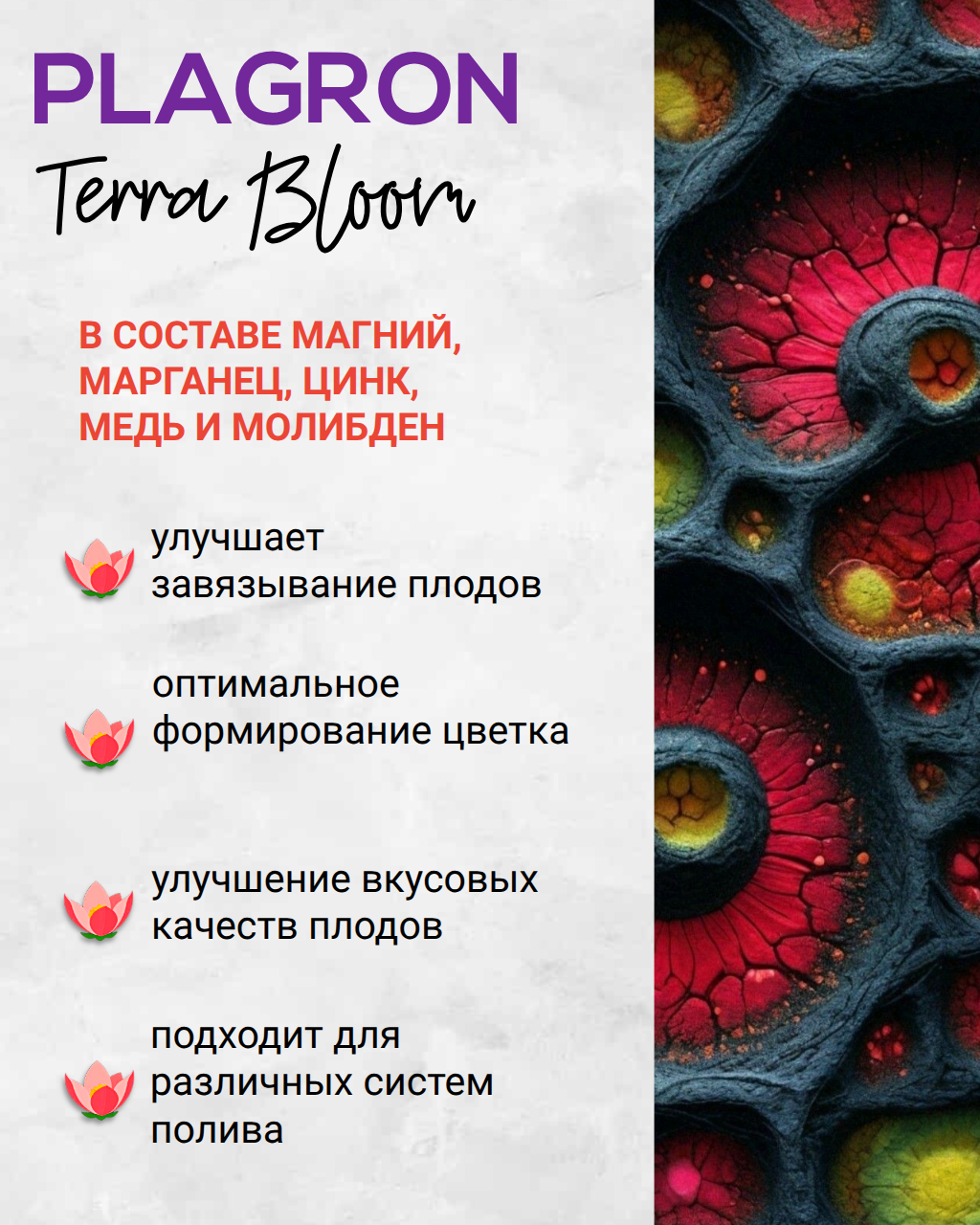 Terra Bloom – сильно концентрированное минеральное удобрение для стадии цветения. Подходит для всех почвосмесей и может использоваться в сочетании с любыми жидкими удобрениями и добавками. Объём 1 литр.