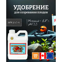 Кроме того, удобрение обеспечивает увеличение фотосинтеза, повышение усвояемости питательных элементов из грунта и при внекорневой подкормке, в условиях гидропонного выращивания. Оно стабилизирует водообмен в клетках растения. Применяется на 5-6 неделе цветения, в дозах 2 мл/ 1 литр воды однократно в течение недели.