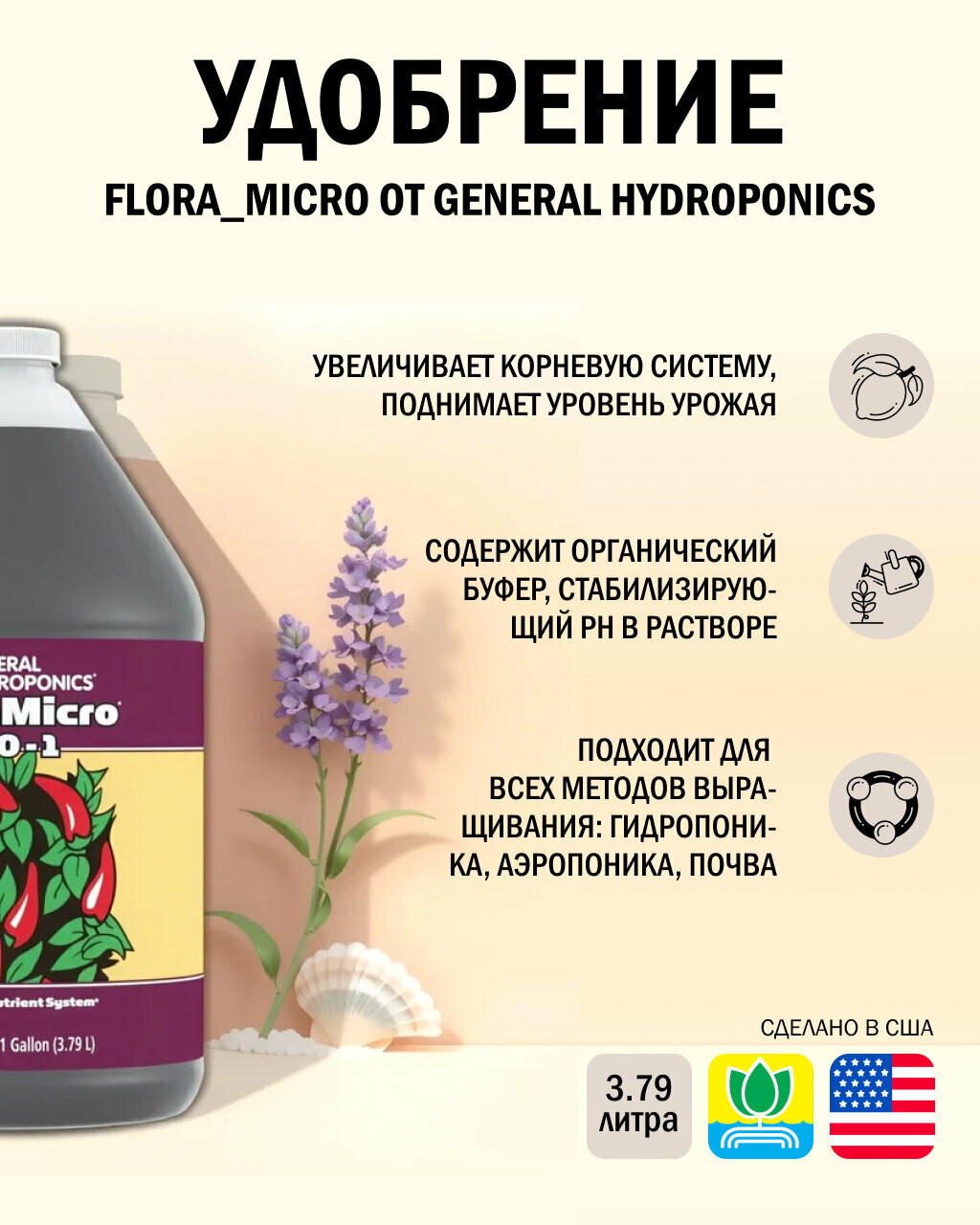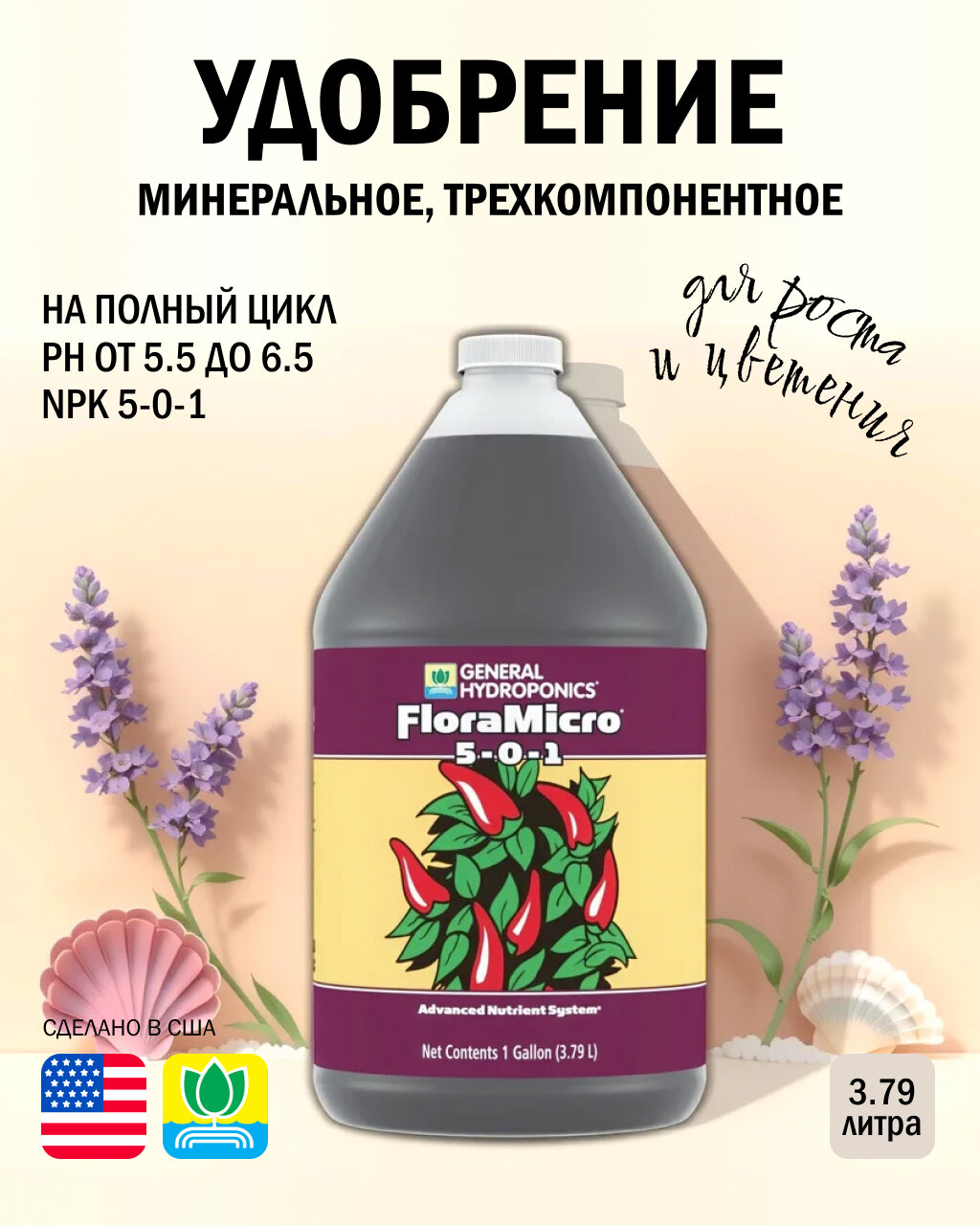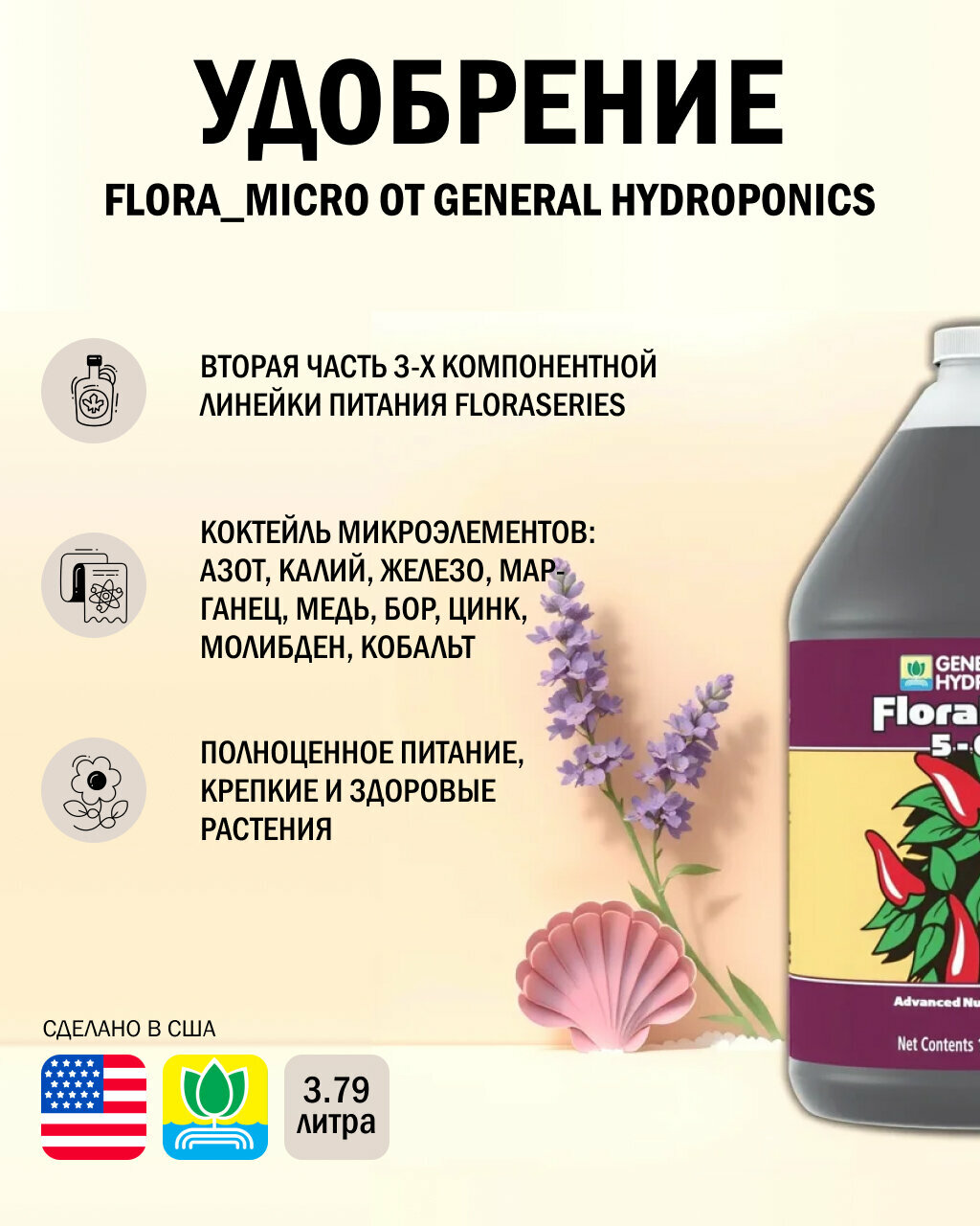 Удобрение трёхкомпонентное базовое General Hydroponics FloraMicro (USA) 3.79 л.: сравнение цен, характеристики, фото, актуальное наличие и цены.
