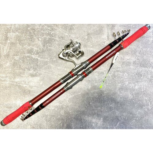 Удочка Shimano, 4м, с катушкой, телескопическая, карбоновая, красная