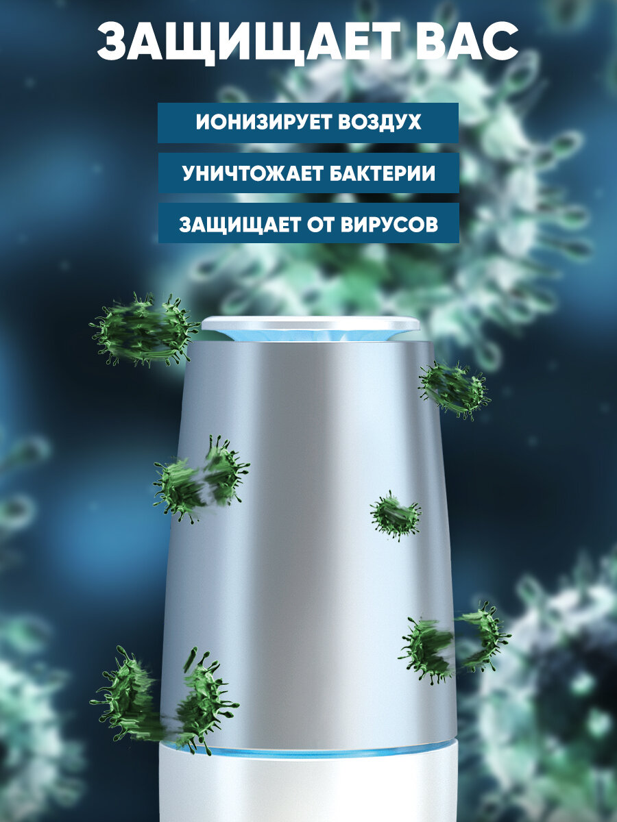 - Встроенная турбина в устройство пропускает воздух через себя и убивает вирусы и неприятные запахи.