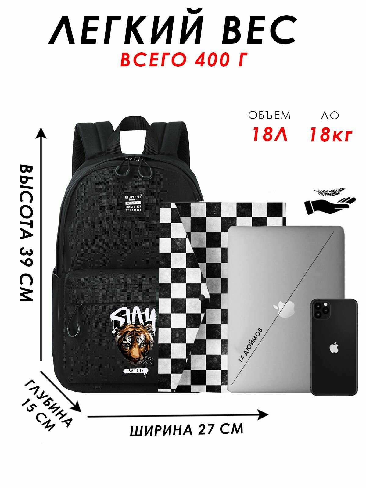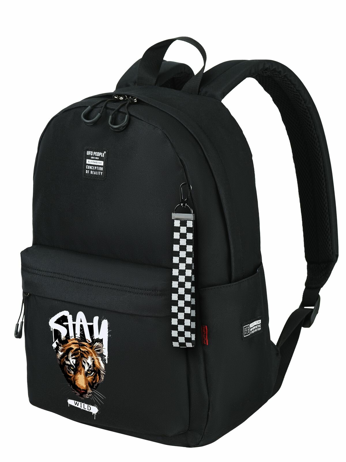 UFO PEOPLE Рюкзак черный для подростков мальчиков и девочек летний городской/ Ранец школьный молодежный для средних и старших классов/ Вместительный портфель для школы спорта тренировок, под ноутбук