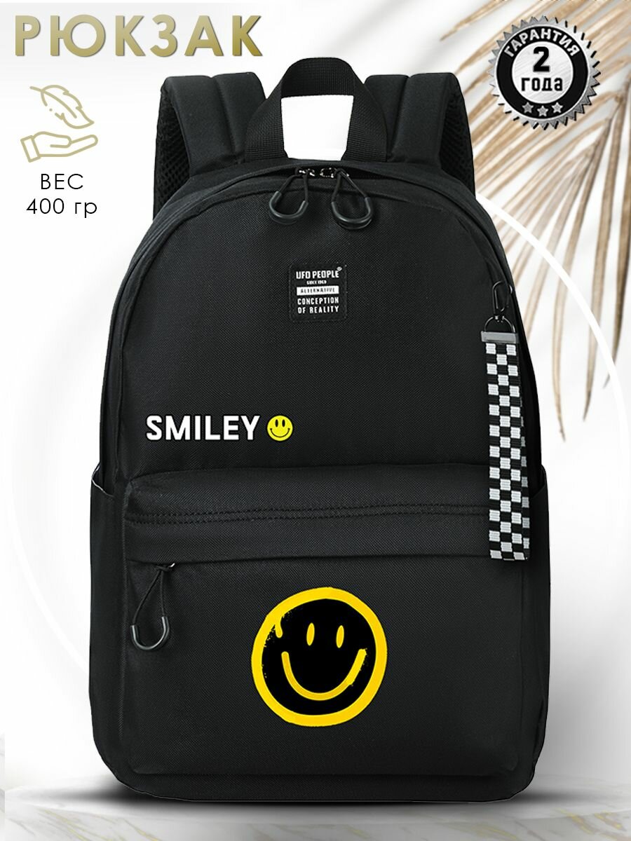 Купить UFO PEOPLE Рюкзак для старшеклассников мальчиков и девочек подростков под ноутбук/ Ранец городской летний удобный черный с принтом/ Вместительный портфель для спорта тренировок прогулок и путешествий с доставкой по всей России.