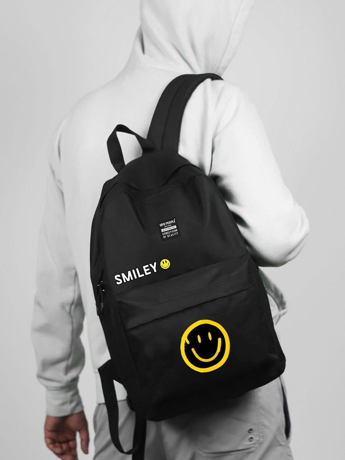 UFO PEOPLE Рюкзак для старшеклассников мальчиков и девочек подростков под ноутбук/ Ранец городской летний удобный черный с принтом/ Вместительный портфель для спорта тренировок прогулок и путешествий