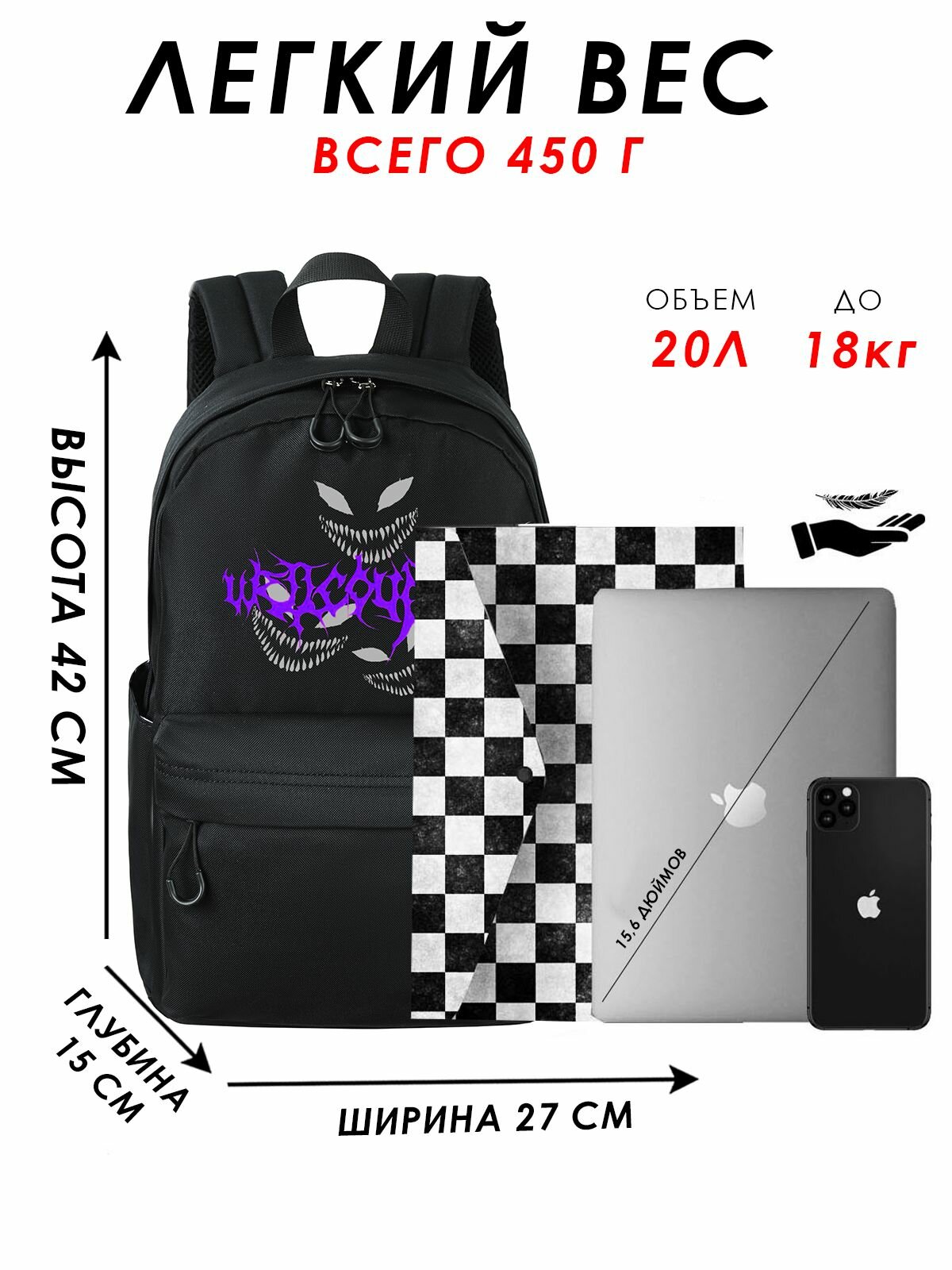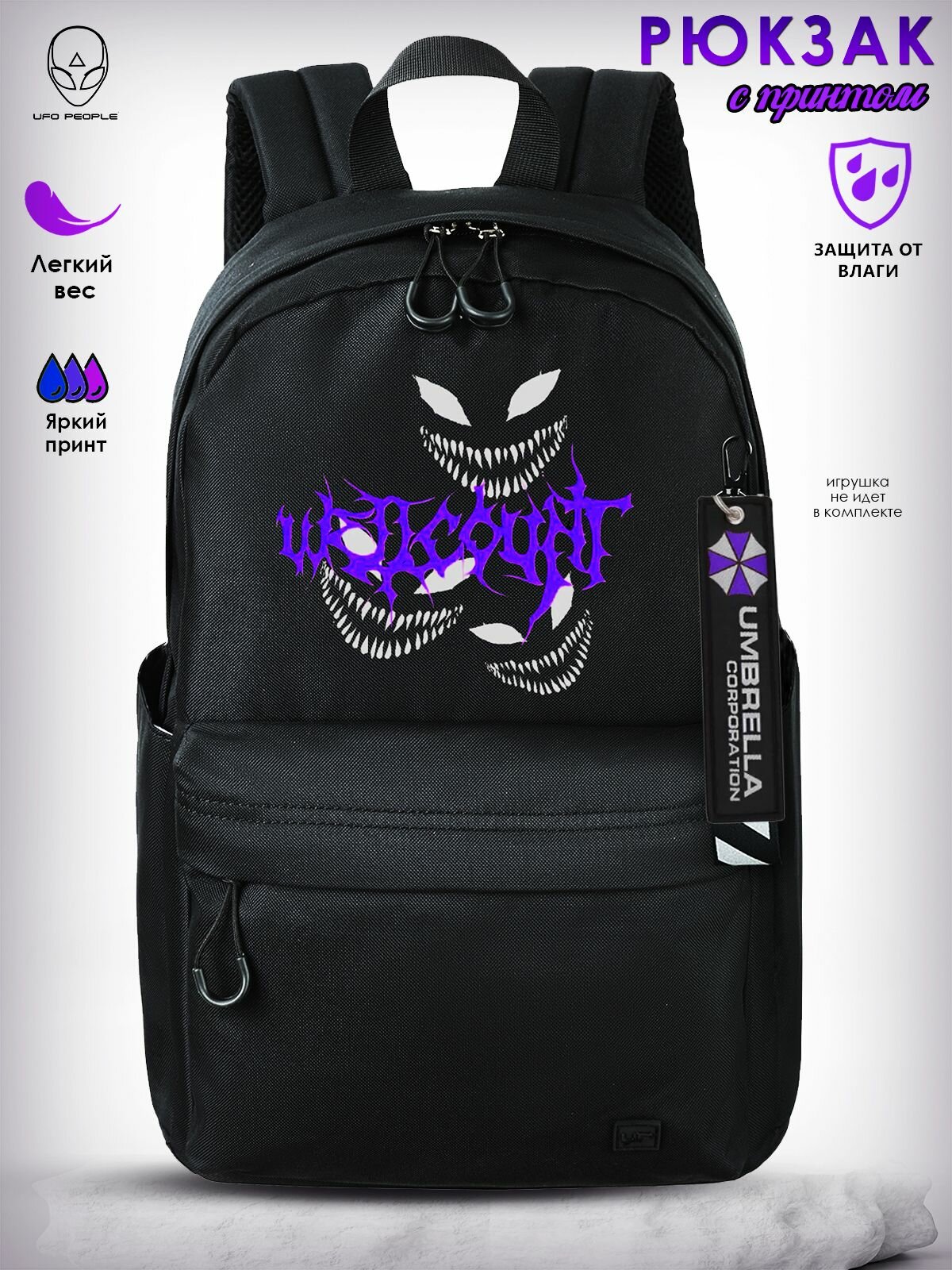 Купить UFO PEOPLE Рюкзак городской летний черный с принтом аниме/ Школьный ранец для старшеклассника подростка молодежный стильный модный унисекс/ Вместительный портфель под ноутбук и для путешествий с доставкой по всей России.