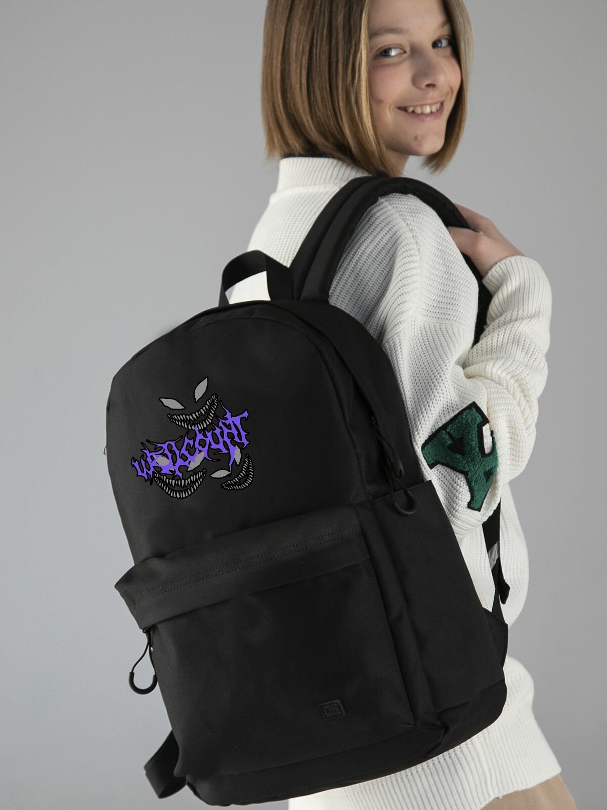 UFO PEOPLE Рюкзак городской летний черный с принтом аниме/ Школьный ранец для старшеклассника подростка молодежный стильный модный унисекс/ Вместительный портфель под ноутбук и для путешествий