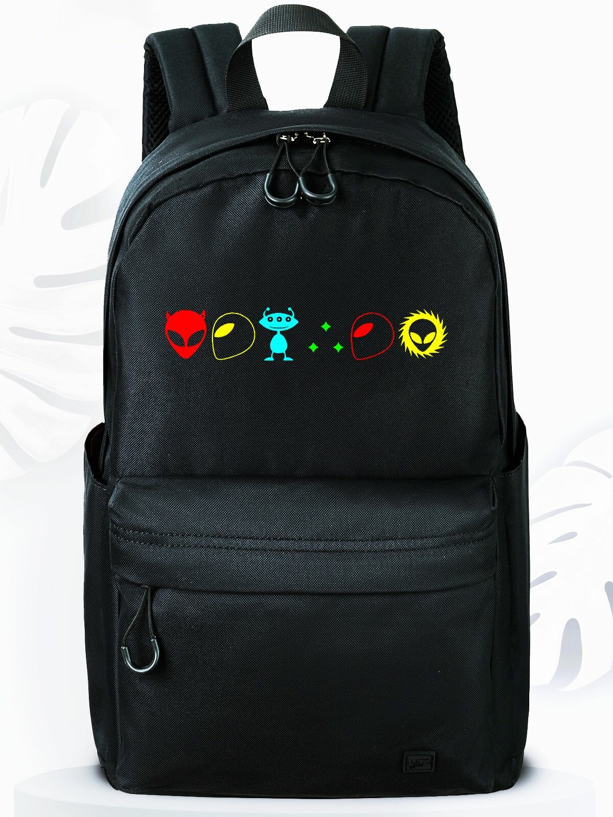 Купить UFO PEOPLE Рюкзак городской летний черный с принтом аниме/ Школьный ранец для старшеклассника подростка молодежный стильный модный унисекс/ Вместительный портфель под ноутбук и для путешествий с доставкой по всей России.