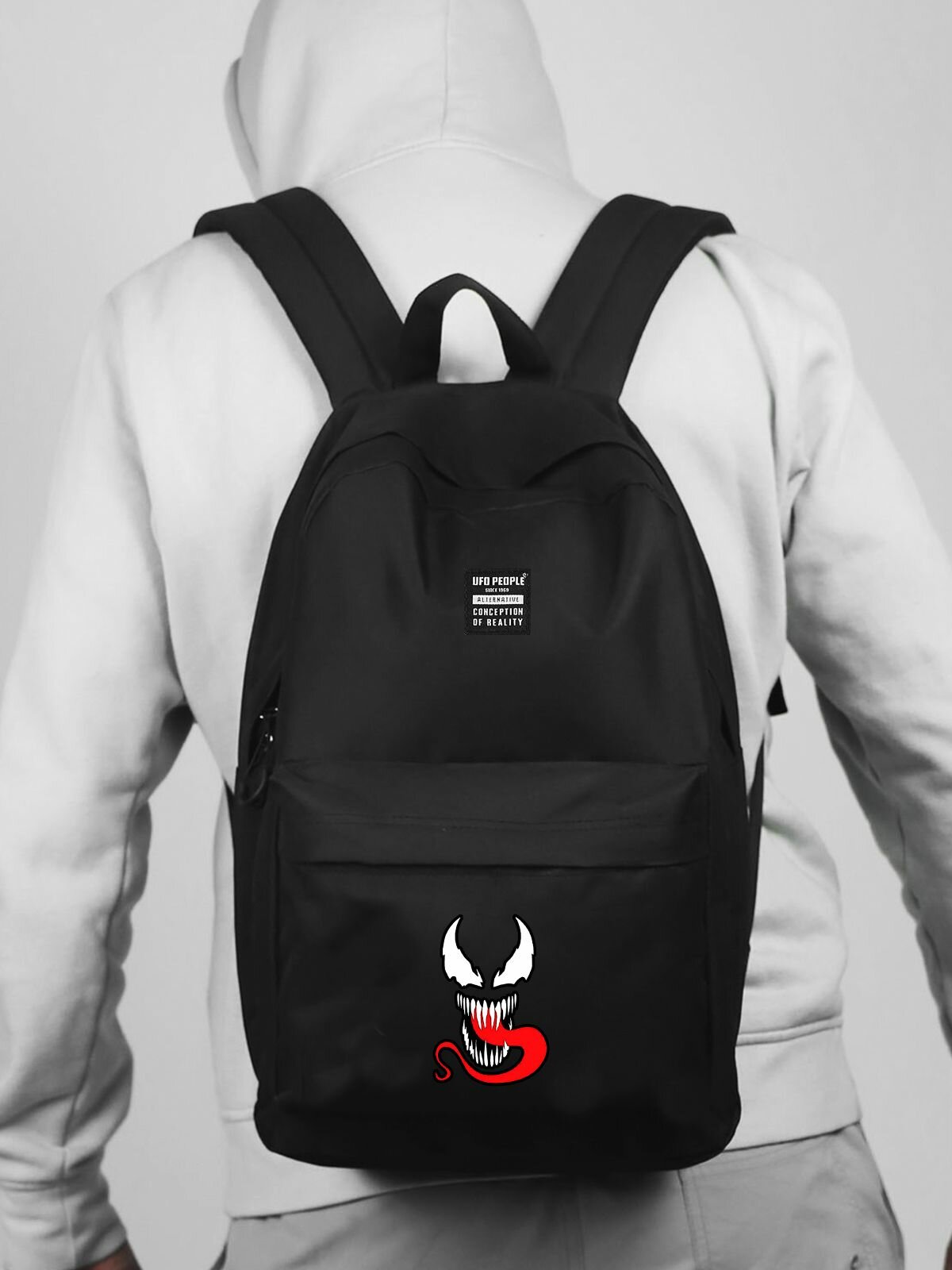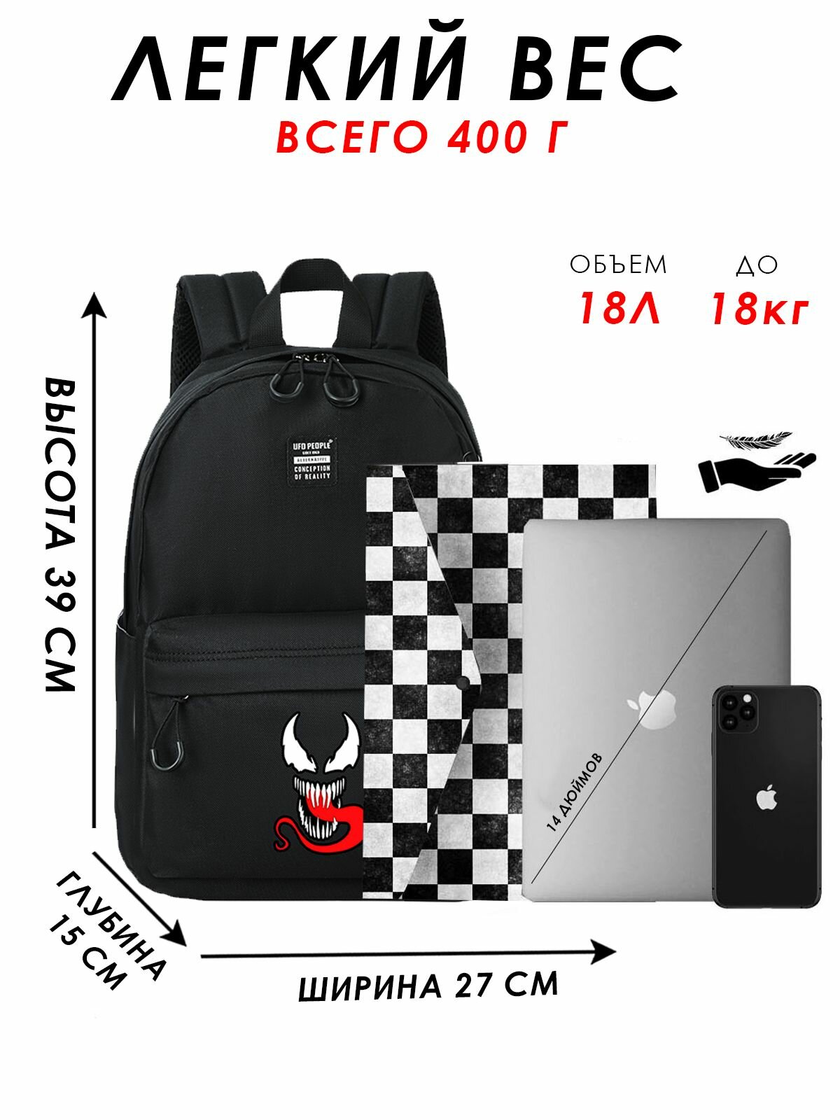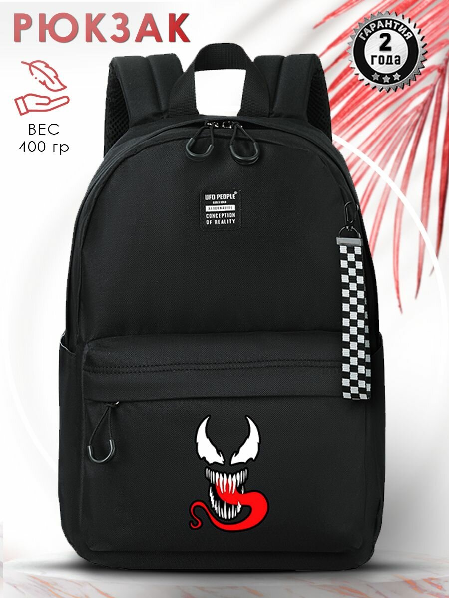 Купить UFO PEOPLE Рюкзак городской летний черный с принтом аниме/ Школьный ранец для старшеклассника подростка молодежный стильный модный унисекс/ Вместительный портфель под ноутбук и для путешествий с доставкой по всей России.