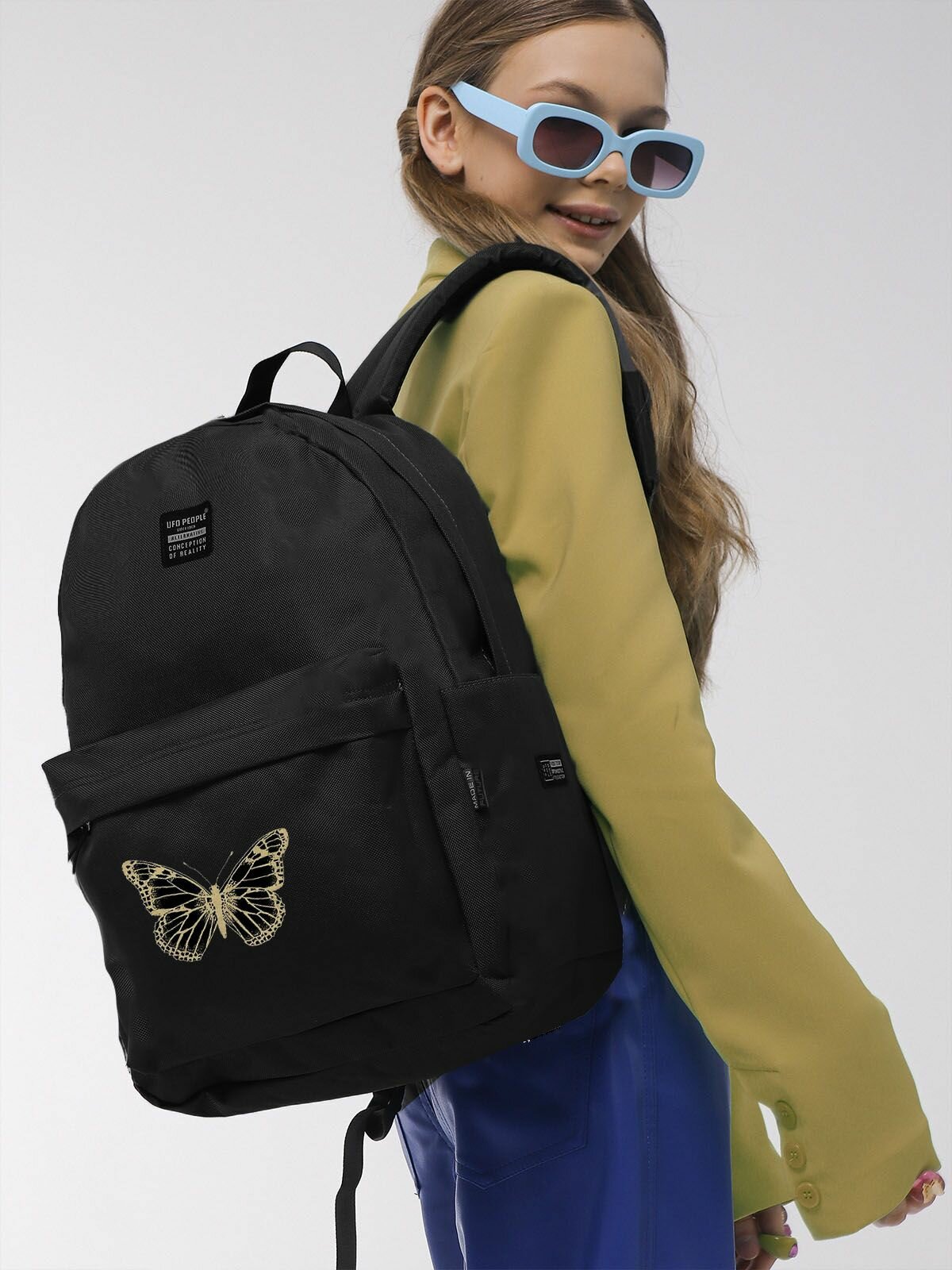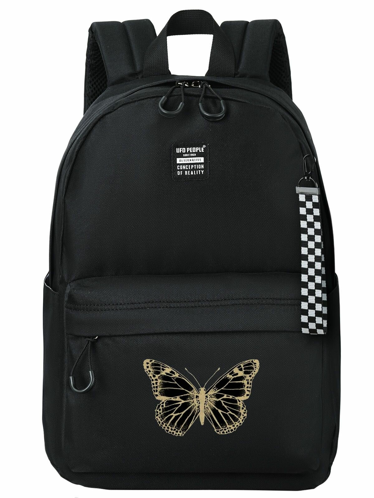 UFO PEOPLE Рюкзак школьный для девочек, женский для девушек, черный, спортивный, городской, под ноутбук/ Ранец для подростка/ Современный вместительный портфель для школы тренировок прогулок, 40х35