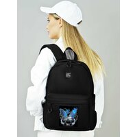UFO PEOPLE Рюкзак школьный для девочек, женский для девушек, черный, спортивный, городской, под ноутбук/ Ранец для подростка/ Современный вместительный портфель для школы тренировок прогулок, 40х35