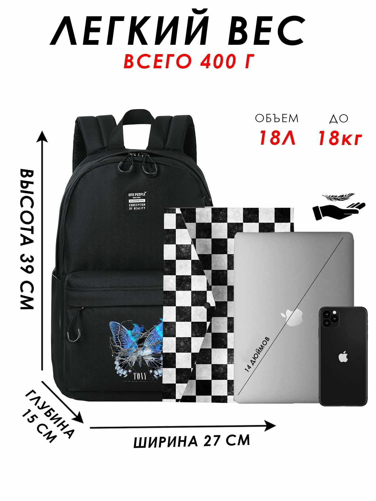 UFO PEOPLE Рюкзак школьный для девочек, женский для девушек, черный, спортивный, городской, под ноутбук/ Ранец для подростка/ Современный вместительный портфель для школы тренировок прогулок, 40х35: сравнение цен, характеристики, фото, актуальное наличие и цены.