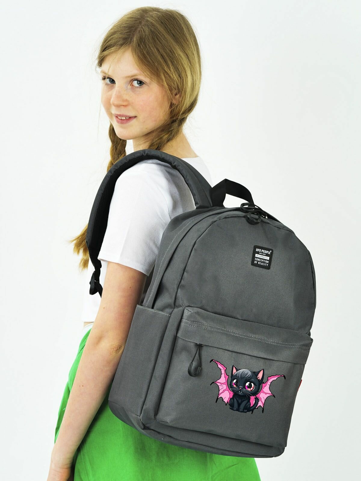 UFO PEOPLE Рюкзак школьный для девочки старшеклассницы однотонный с принтом/ Портфель для детей средних старших классов анатомический/Летний легкий рюкзак для учебы, повседневный для спорта и отдыха