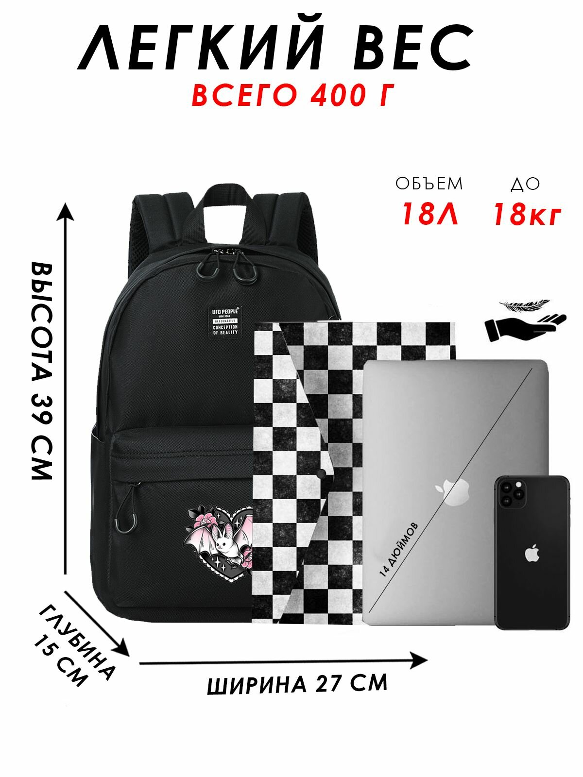UFO PEOPLE Рюкзак женский городской спортивный черный модный/Ранец школьный для девочек подростков, девушек, для ноутбука/Портфель черный современный вместительный для школы тренировок прогулок, 40х35: сравнение цен, характеристики, фото, актуальное наличие и цены.