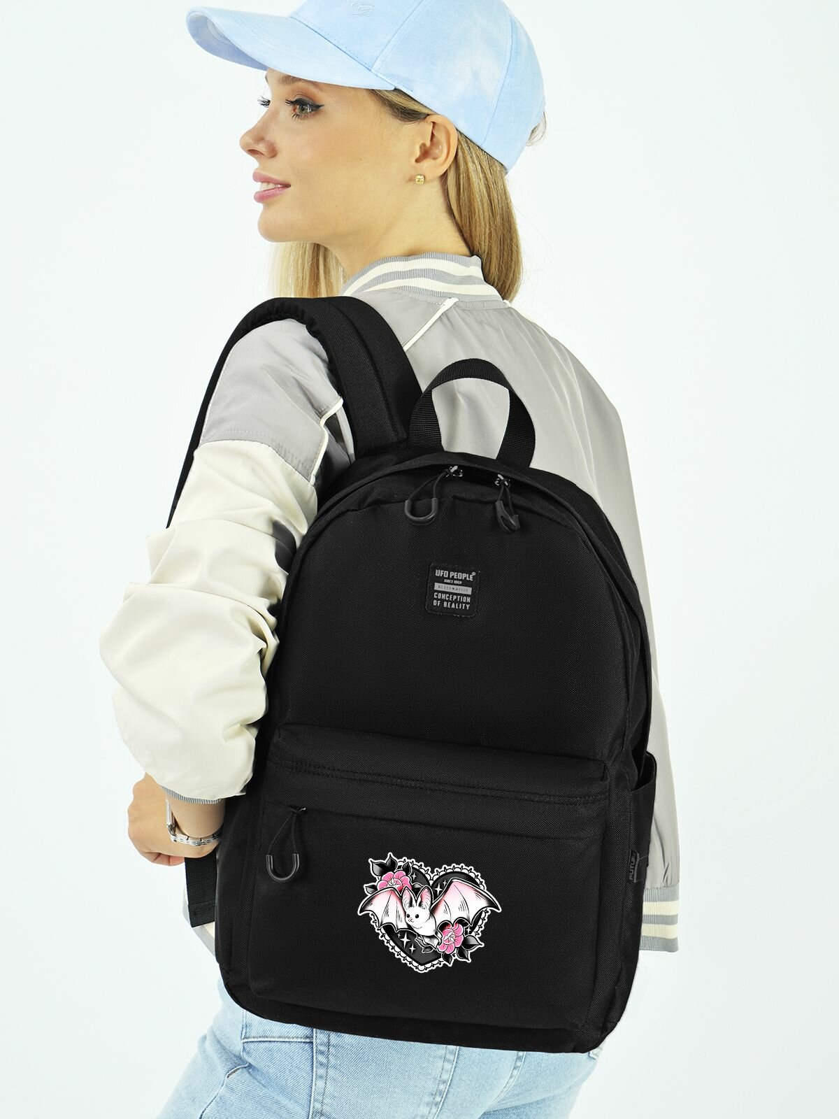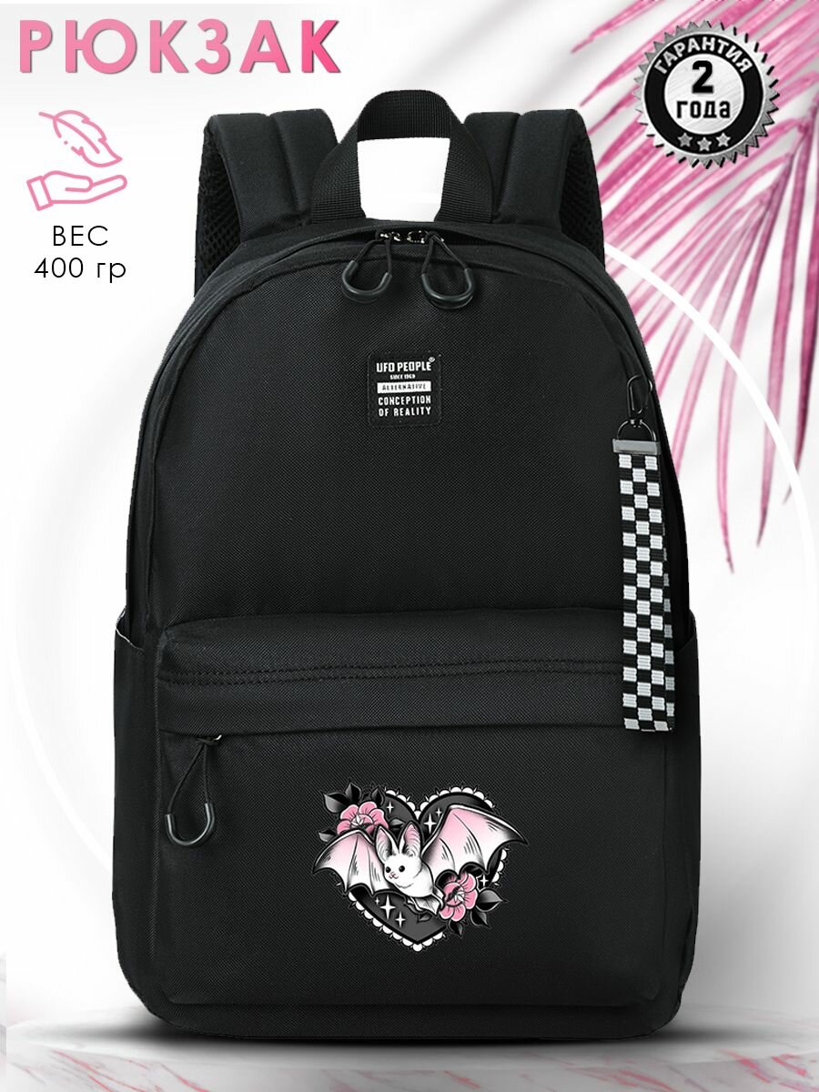UFO PEOPLE Рюкзак женский городской спортивный черный модный/Ранец школьный для девочек подростков, девушек, для ноутбука/Портфель черный современный вместительный для школы тренировок прогулок, 40х35