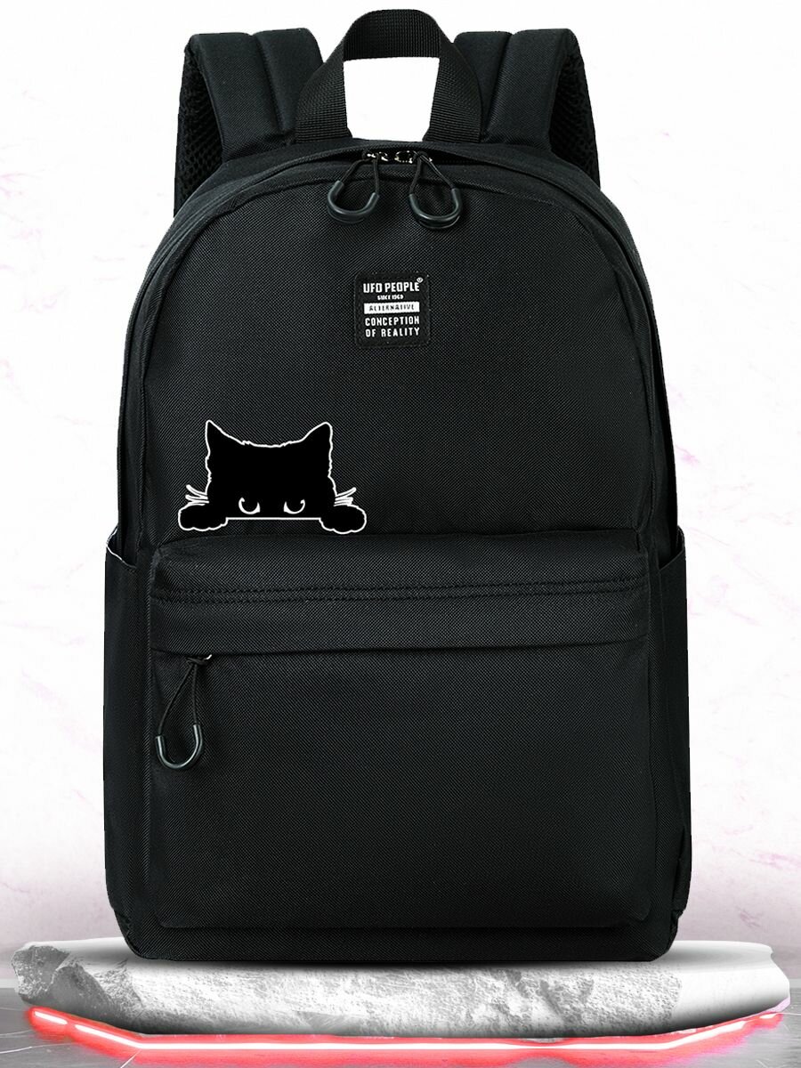 UFO PEOPLE Рюкзак женский городской спортивный черный модный/ Ранец школьный для девочек старшеклассниц, девушек, для ноутбука/ Портфель черный современный вместительный для школы тренировок прогулок