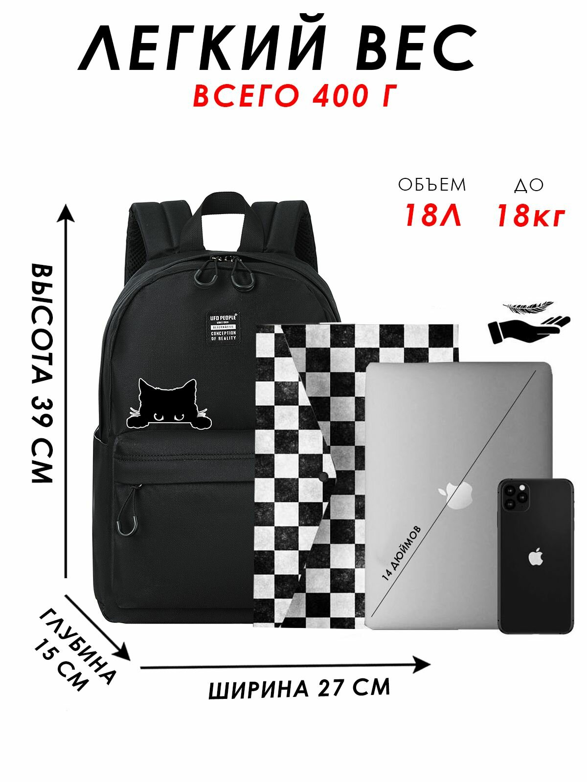UFO PEOPLE Рюкзак женский городской спортивный черный модный/ Ранец школьный для девочек старшеклассниц, девушек, для ноутбука/ Портфель черный современный вместительный для школы тренировок прогулок: сравнение цен, характеристики, фото, актуальное наличие и цены.