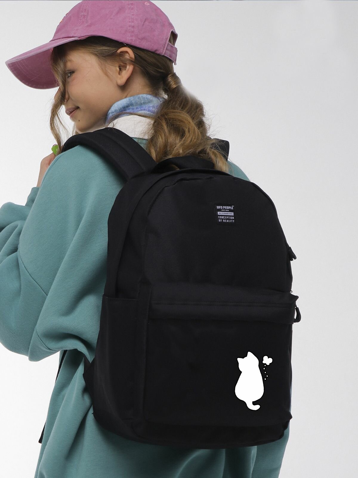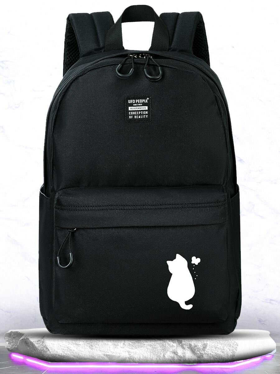 UFO PEOPLE Рюкзак женский городской спортивный черный модный/ Ранец школьный для девочек старшеклассниц, девушек, для ноутбука/ Портфель черный современный вместительный для школы тренировок прогулок