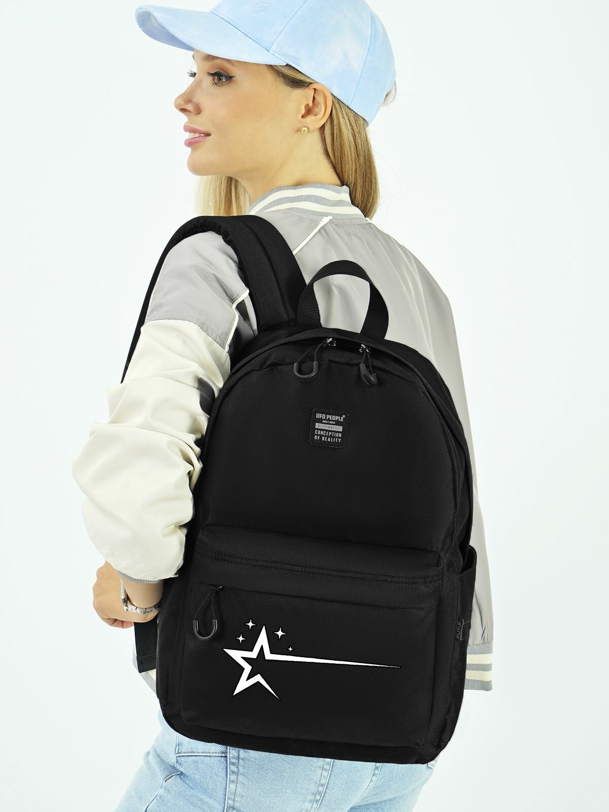 UFO PEOPLE Рюкзак женский городской спортивный черный модный/ Ранец школьный для девочек старшеклассниц, девушек, для ноутбука/ Портфель черный современный вместительный для школы тренировок прогулок