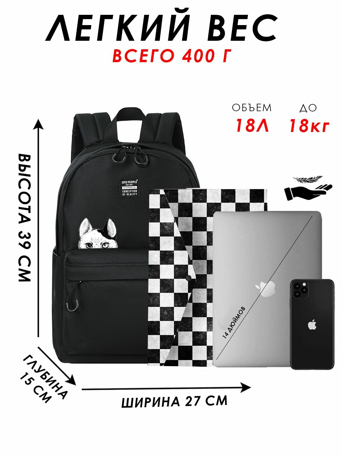 UFO PEOPLE Рюкзак женский городской спортивный черный модный/ Ранец школьный для девочек старшеклассниц, девушек, для ноутбука/ Портфель черный современный вместительный для школы тренировок прогулок: сравнение цен, характеристики, фото, актуальное наличие и цены.