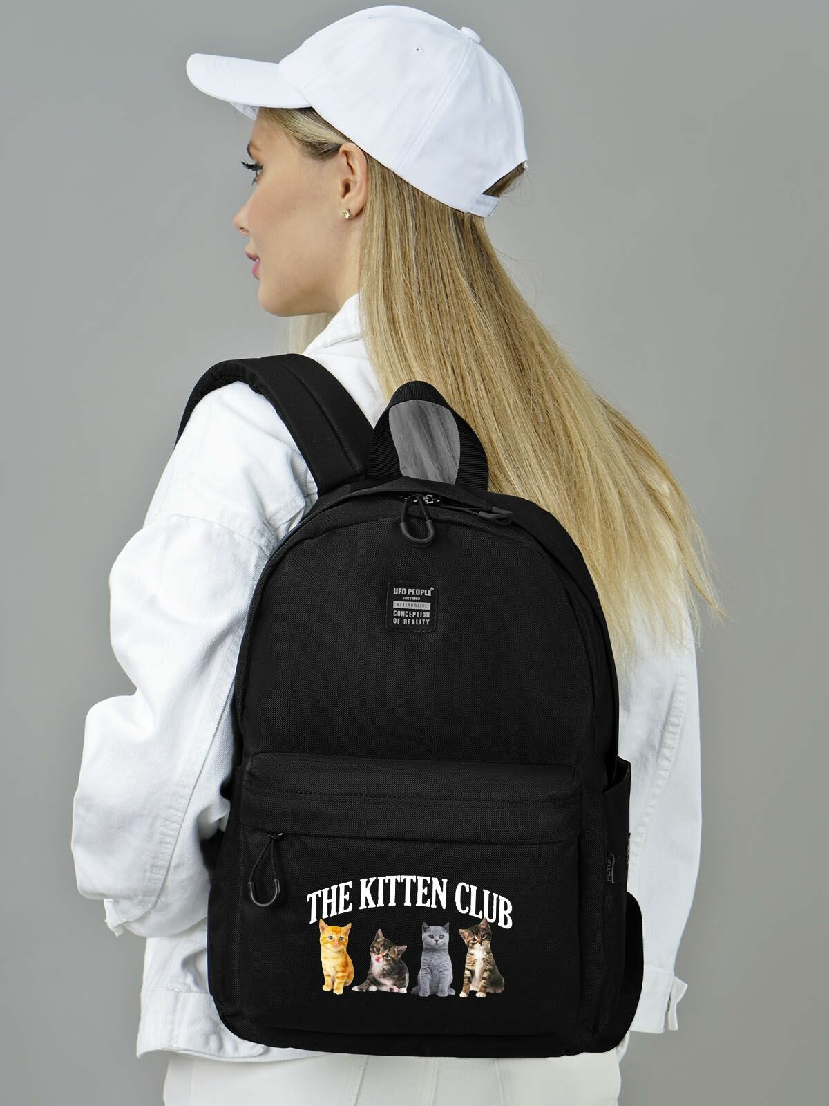 UFO PEOPLE Рюкзак женский городской спортивный черный модный/ Ранец школьный для девочек старшеклассниц, девушек, для ноутбука/ Портфель черный современный вместительный для школы тренировок прогулок