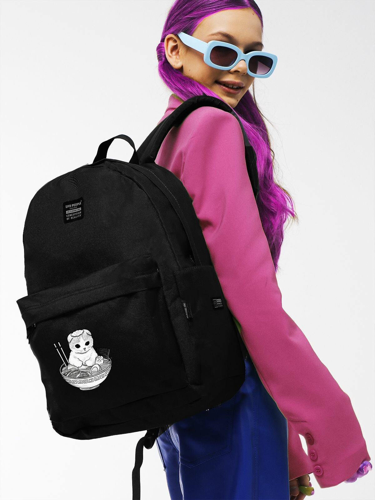 UFO PEOPLE Рюкзак женский городской спортивный черный модный/ Ранец школьный для девочек старшеклассниц, девушек, для ноутбука/ Портфель черный современный вместительный для школы тренировок прогулок