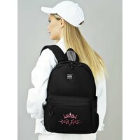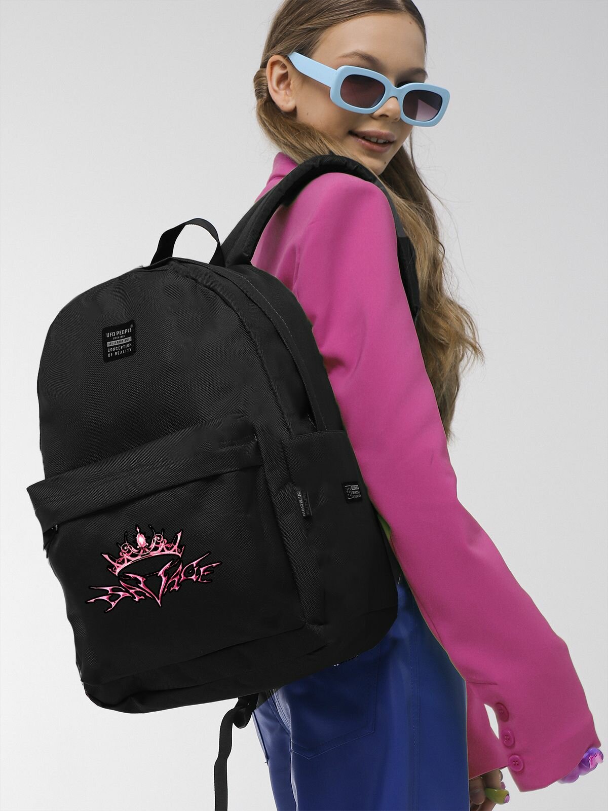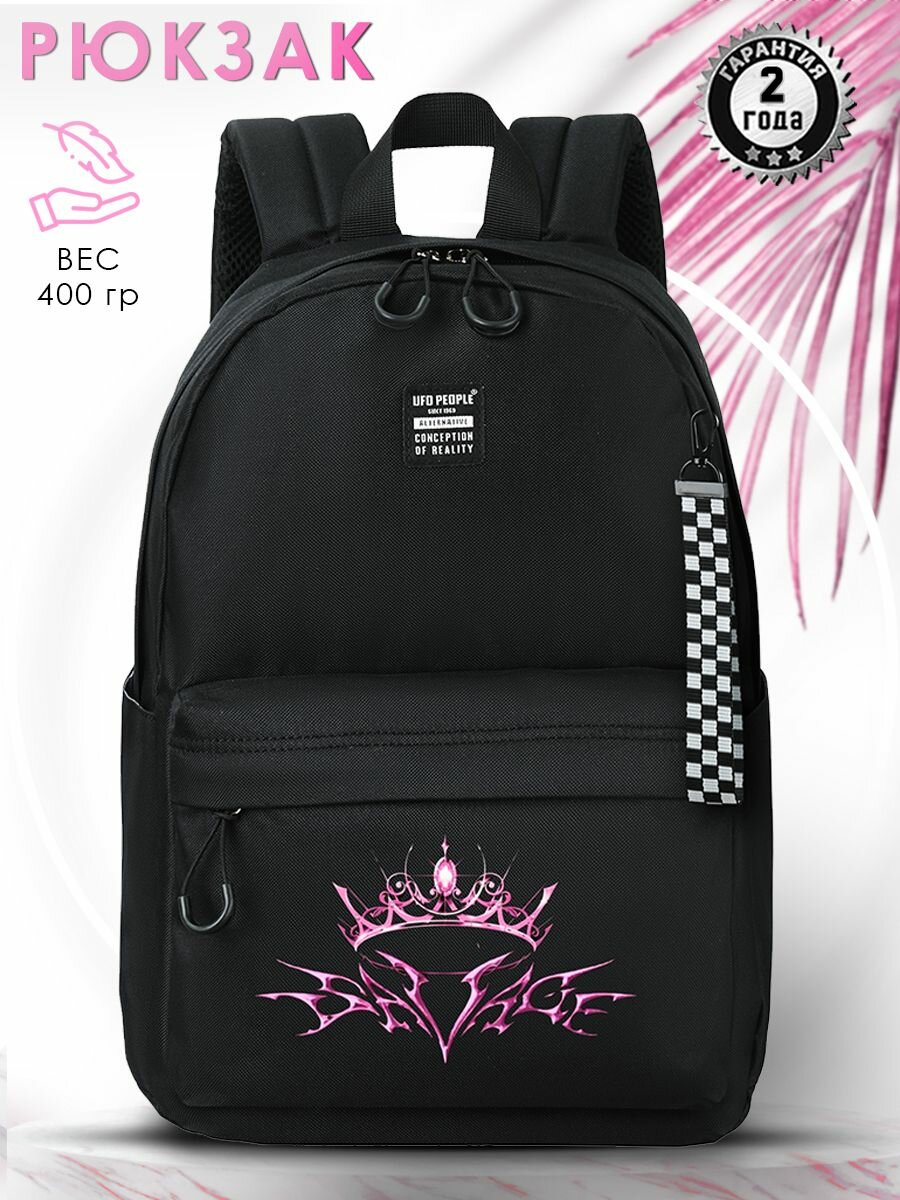 UFO PEOPLE Рюкзак женский городской спортивный черный модный/ Ранец школьный для девочек старшеклассниц, девушек, для ноутбука/ Портфель черный современный вместительный для школы тренировок прогулок