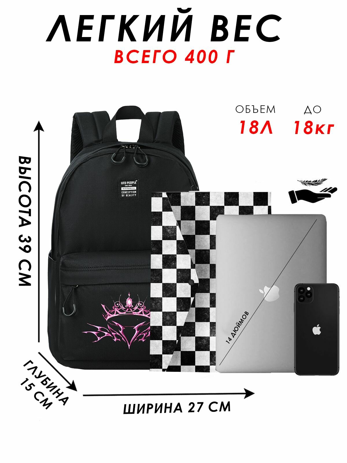 Купить UFO PEOPLE Рюкзак женский городской спортивный черный модный/ Ранец школьный для девочек старшеклассниц, девушек, для ноутбука/ Портфель черный современный вместительный для школы тренировок прогулок с доставкой по всей России.