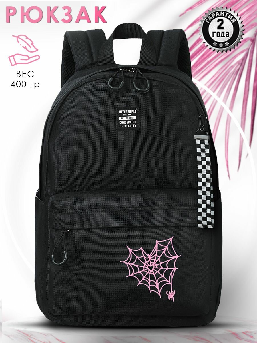 Купить UFO PEOPLE Рюкзак женский городской спортивный черный модный/ Ранец школьный для девочек старшеклассниц, девушек, для ноутбука/ Портфель черный современный вместительный для школы тренировок прогулок с доставкой по всей России.