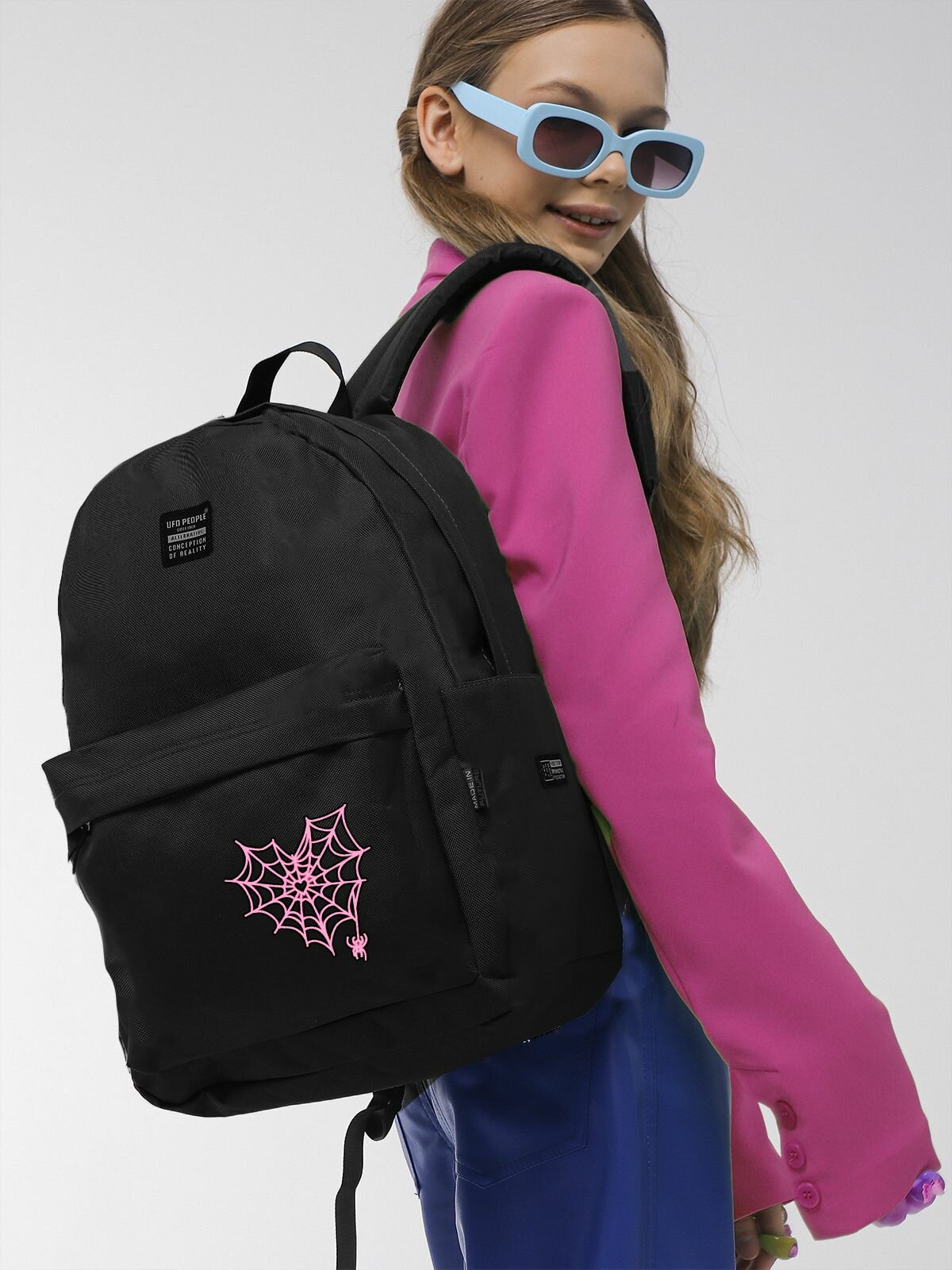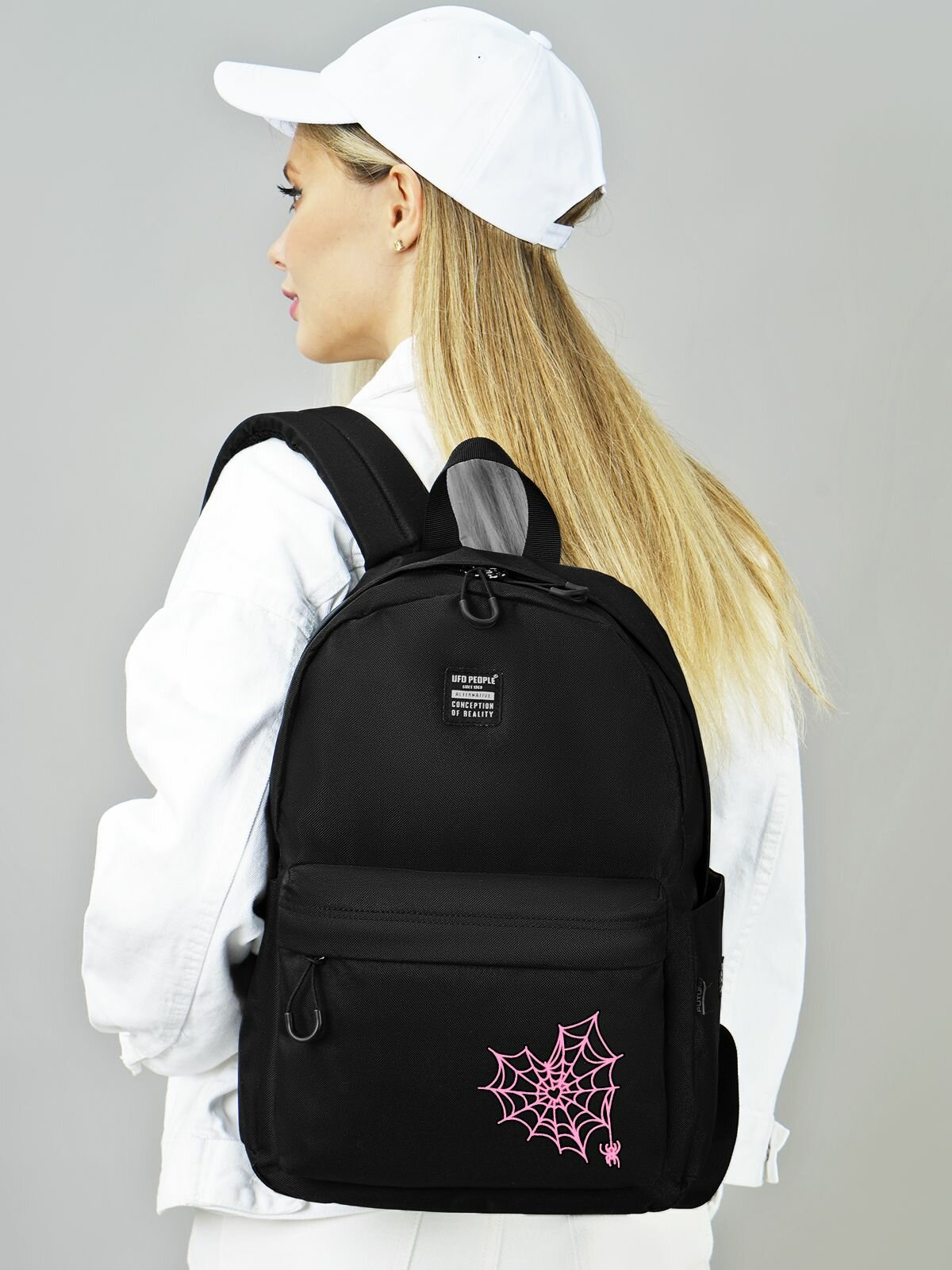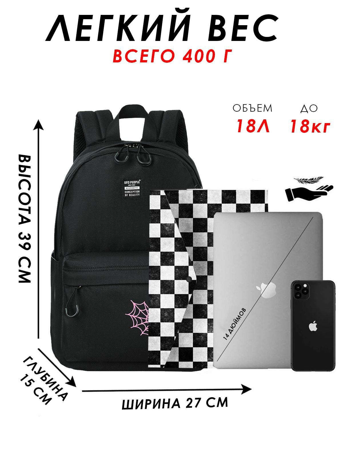 UFO PEOPLE Рюкзак женский городской спортивный черный модный/ Ранец школьный для девочек старшеклассниц, девушек, для ноутбука/ Портфель черный современный вместительный для школы тренировок прогулок