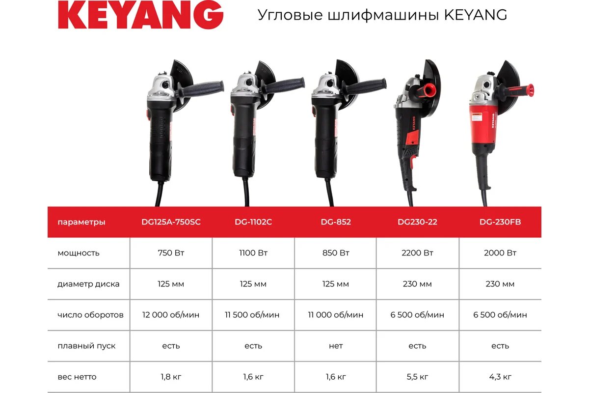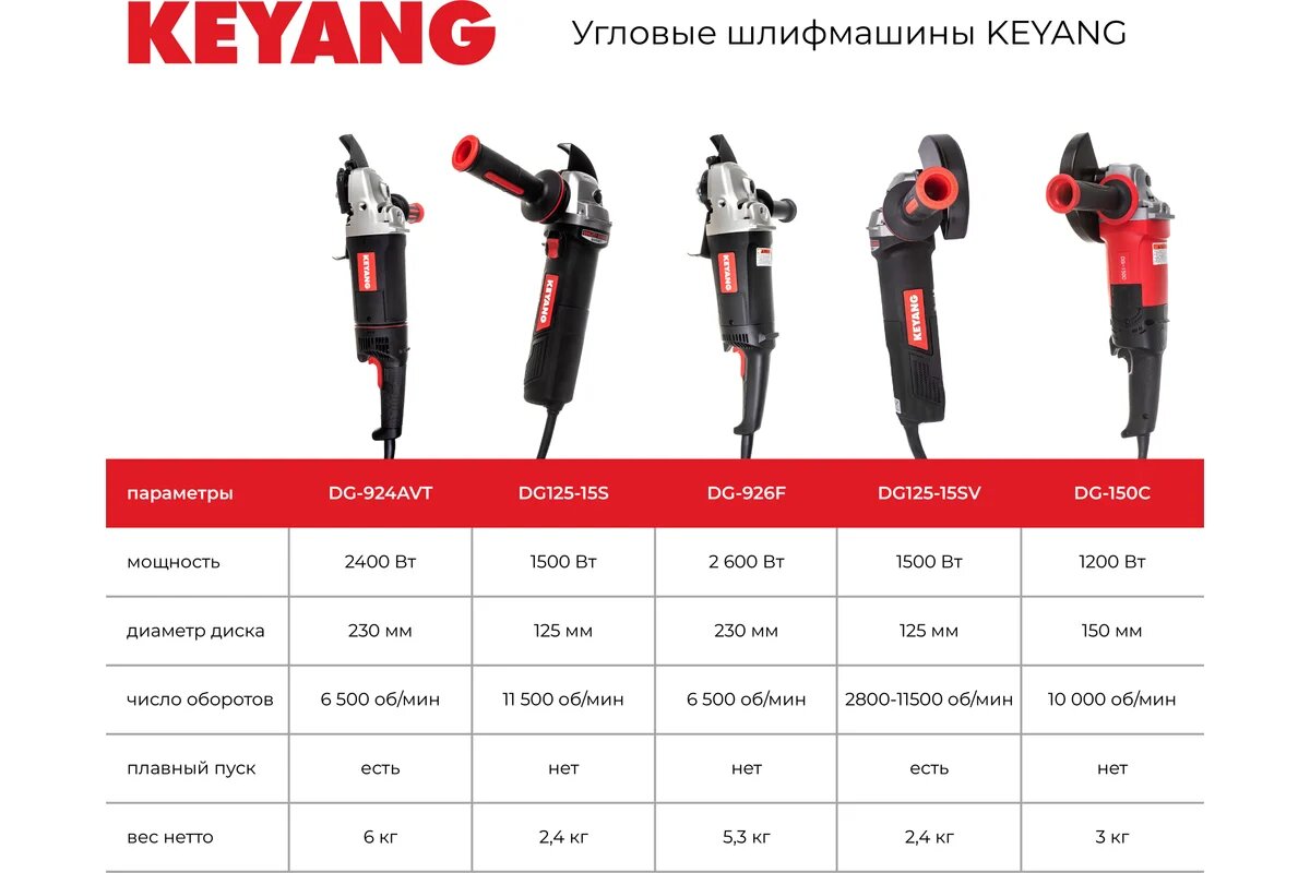 Углошлифмашина KEYANG DG-926F, диаметр диска 230мм, 2600Вт, 6500 об/мин, трёхпозиционная рукоятка: сравнение цен, характеристики, фото, актуальное наличие и цены.