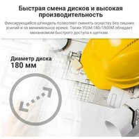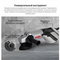 Профессиональная двуручная углошлифовальная машина. Применяется для абразивной резки металлоизделий, для шлифовки, зачистки сварных швов. Удобна при производстве работ, когда требуется промежуточный размер круга.