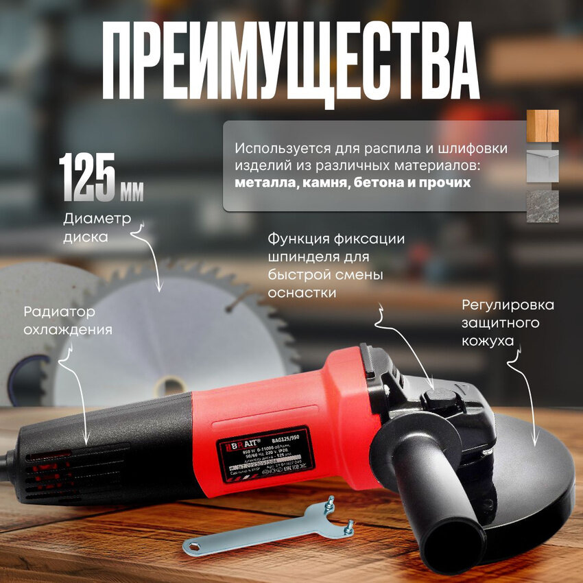 Купить Углошлифовальная машина ( болгарка ) УШМ BRAIT 125/950 ( 950 Вт, 125 мм,11000 об/мин ) с доставкой по всей России.