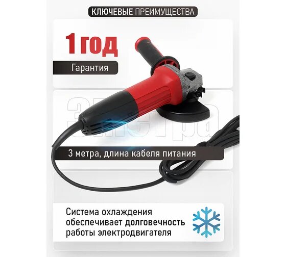 УШМ Nocord, 1100 Вт, диск 125 мм, поддержка и регулировка оборотов, плавный пуск, пылезащита, NCG-1100.125. CP