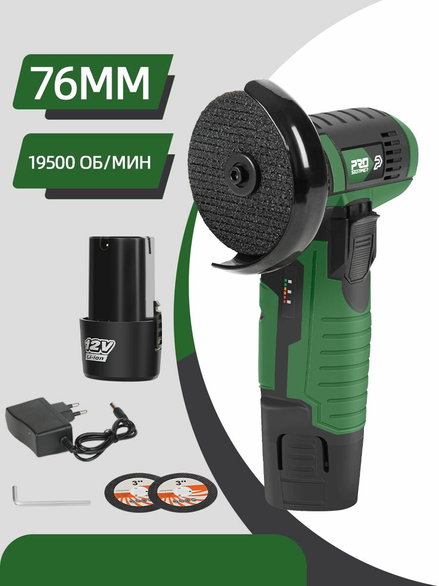 Купить Угловая мельница,76 мм,12 В/1,5 Ач, От аккумуляторный,2 АКБ, PROSTORMER, PSCG00102A с доставкой по всей России.