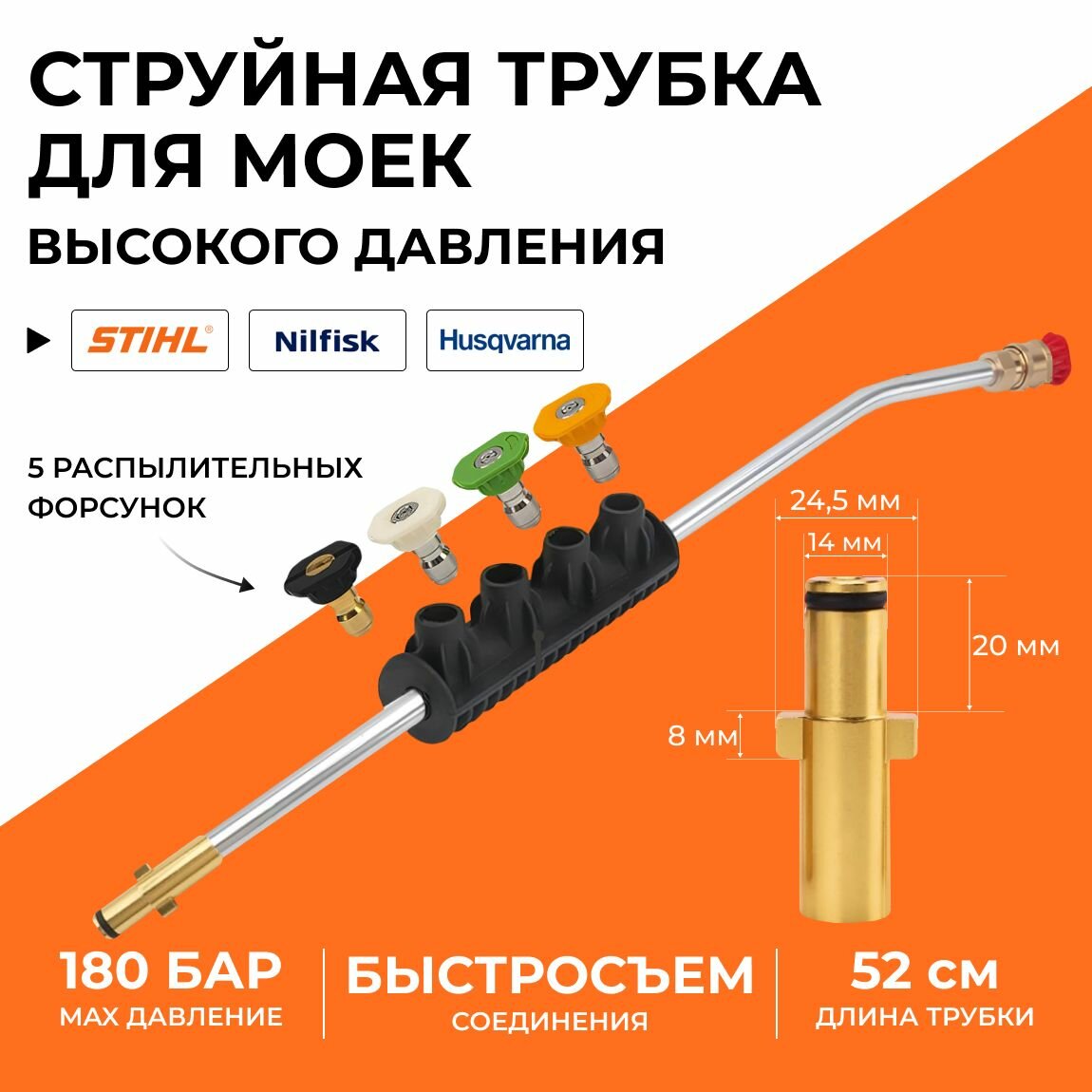 Купить Угловая насадка на пистолет для мойки высокого давления Stihl (Штиль), Husqvarna, Nilfisk, струйная трубка копье с распылительными форсунками с доставкой по всей России.