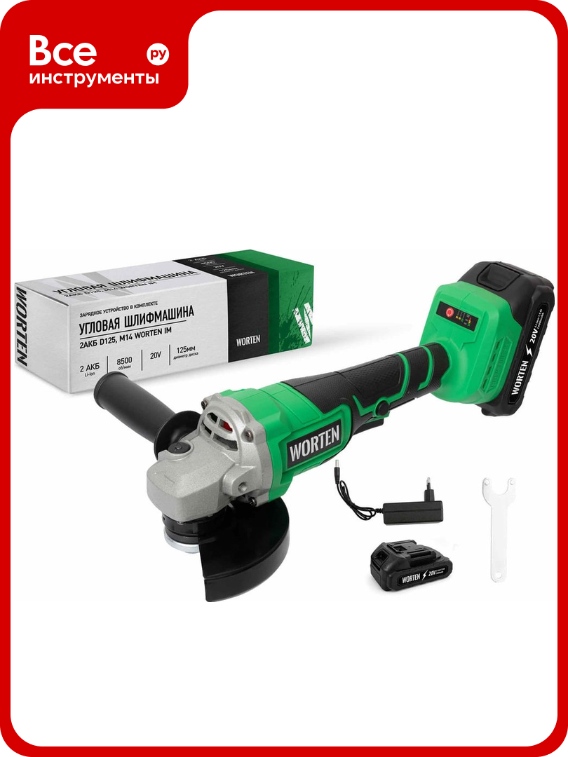 Угловая шлифмашина аккумуляторная WORTEN D125, 20В, 2х1.5 Ач, М14 КА-90000329: сравнение цен, характеристики, фото, актуальное наличие и цены.