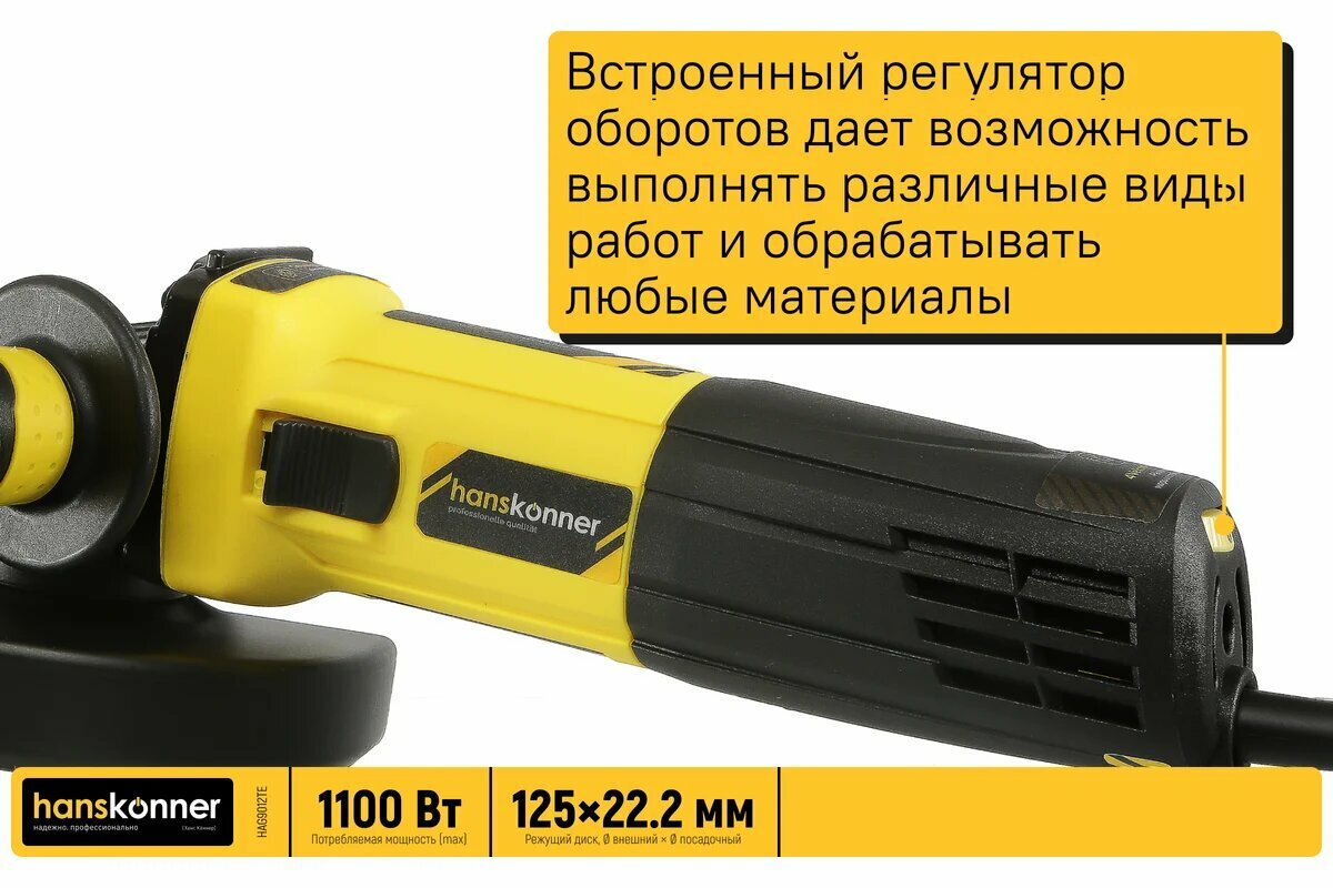 Купить Угловая шлифмашина Hanskonner HAG9012TE, 1100 Вт, защитный кожух, 125 мм с доставкой по всей России. Угловая шлифмашина Hanskonner HAG9012TE, 1100 Вт, защитный кожух, 125 мм: сравнение цен, характеристики, фото, актуальное наличие и цены.