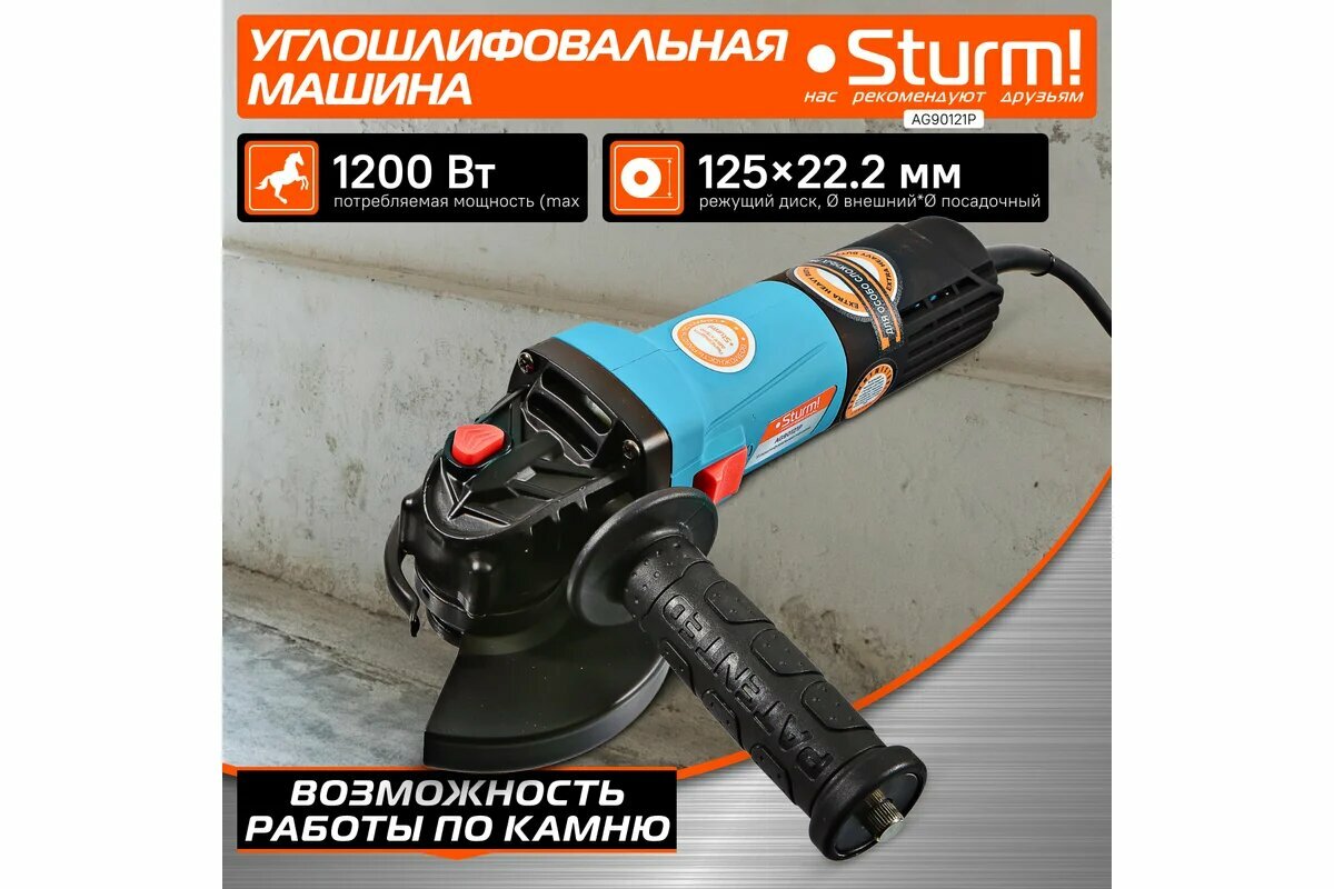 Купить Угловая шлифмашина Sturm! AG90121P, M14, 1200 Вт, 11000 об/мин, диаметр 125 мм с доставкой по всей России.