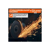 Угловая шлифмашина Sturm! AG9524P, потребляемая мощность 2600 Вт, максимальное число оборотов 6000 об/мин