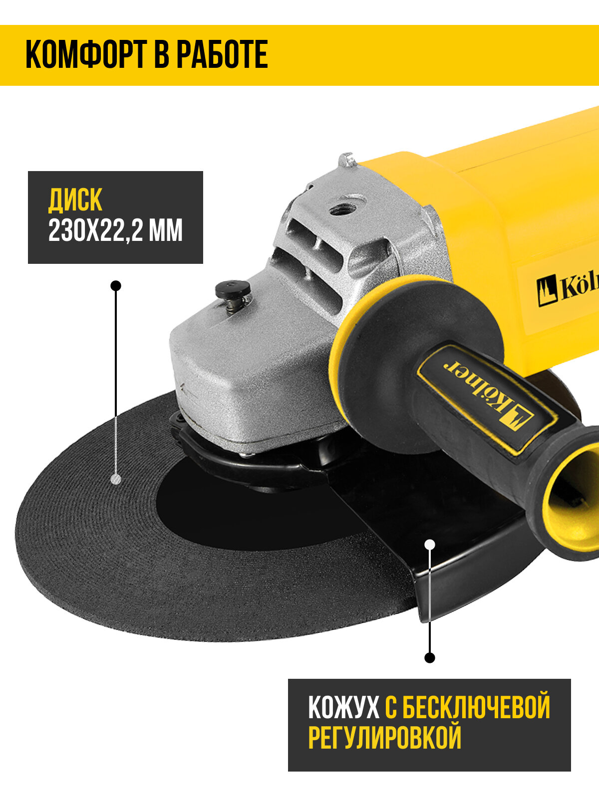 Угловая шлифовальная машина 230 мм с поворотной задней рукояткой Kolner KAG 230-2000: сравнение цен, характеристики, фото, актуальное наличие и цены.