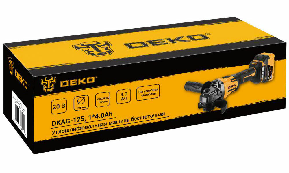 Угловая шлифовальная машина (болгарка) Deko DKAG-125, 20 В, 1*4.0 Ач (083-1063): сравнение цен, характеристики, фото, актуальное наличие и цены.