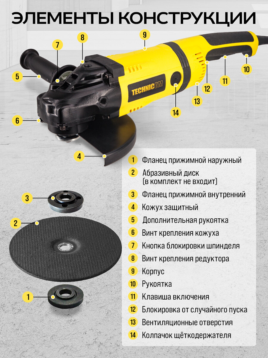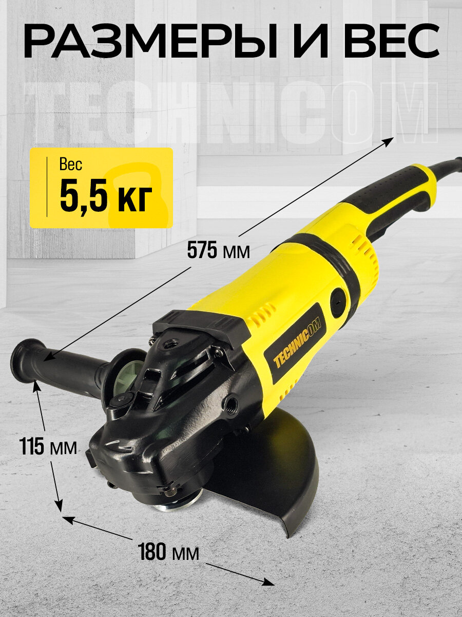 Угловая шлифовальная машина TECHNICOM TC-EAG230, 2600Вт, 220В, 6600 об/мин, диск 230мм: сравнение цен, характеристики, фото, актуальное наличие и цены.