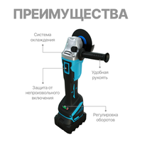 Купить Болгарка аккумуляторная 125мм, УШМ 125, болгарка 125мм, УШМ аккумуляторная, УШМ 125 с регулировкой оборотов с доставкой по всей России.